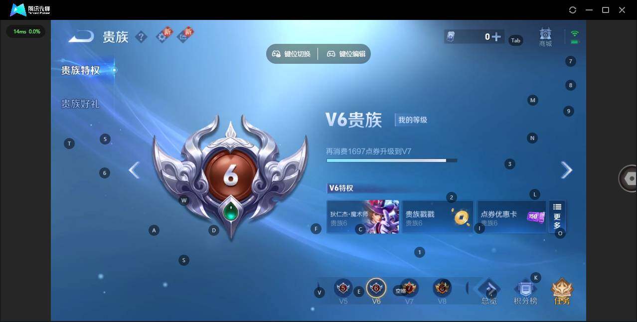 贵族等级: V6 英雄数: 101 皮肤数: 102 星传说: 幽冥之眼 传说
