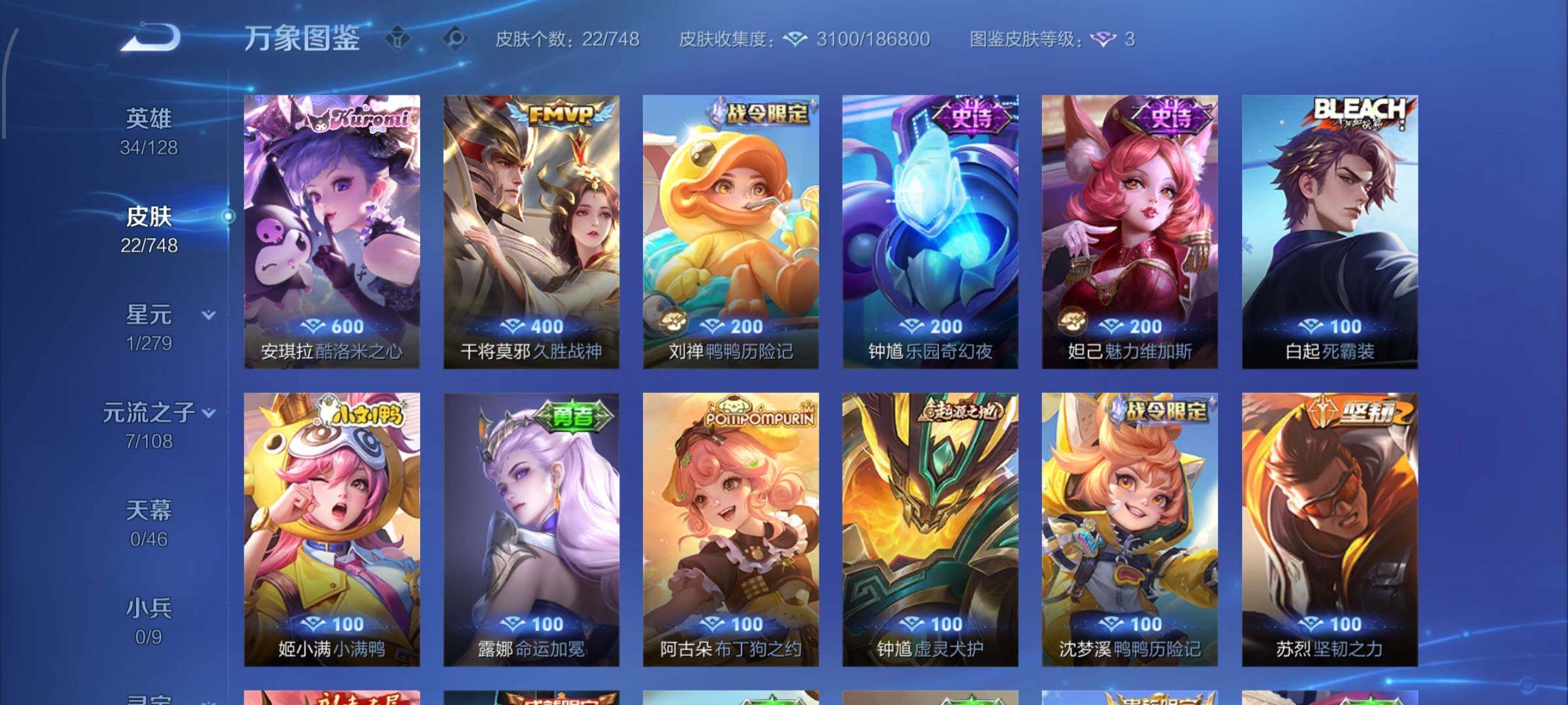【精品战力小号·万战金标干将莫邪·酷洛米之心·久胜战神·可二次】YXw9591-安卓Q-34英雄-22皮肤-1王者印记-30铭文-贵族积分0w【贵族4】【·1珍品·1传说·2按键】【因赛季更新游戏段付以上号为准!】