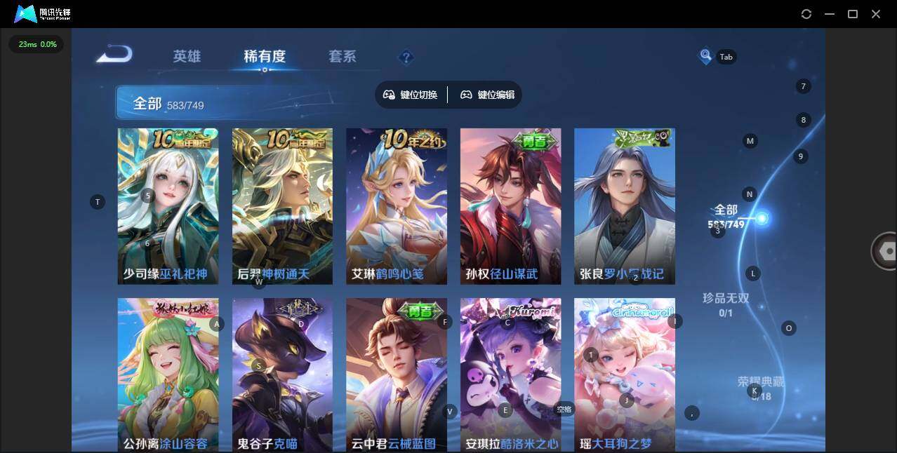 实名: 可修改 贵族等级: V10 英雄数: 128 皮肤数: 583 荣耀水
