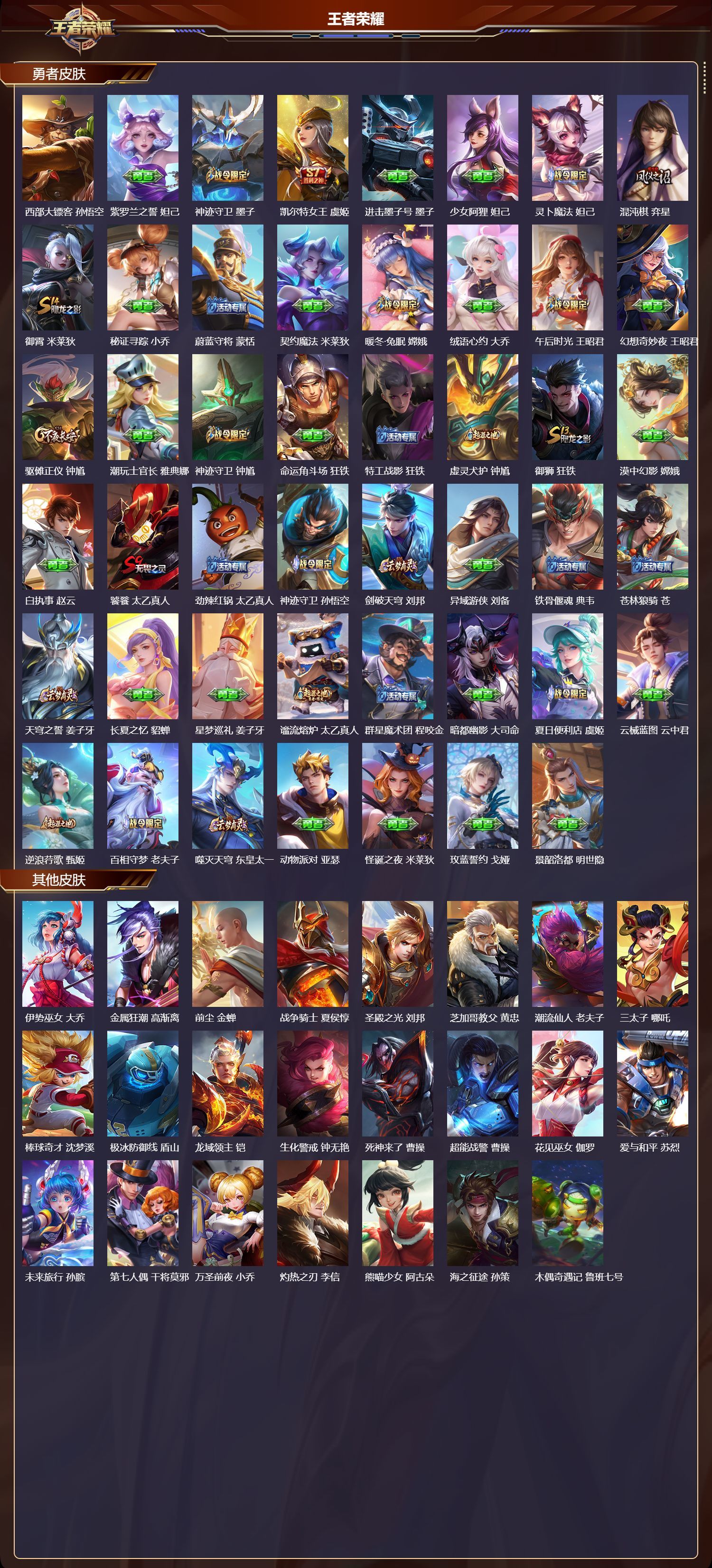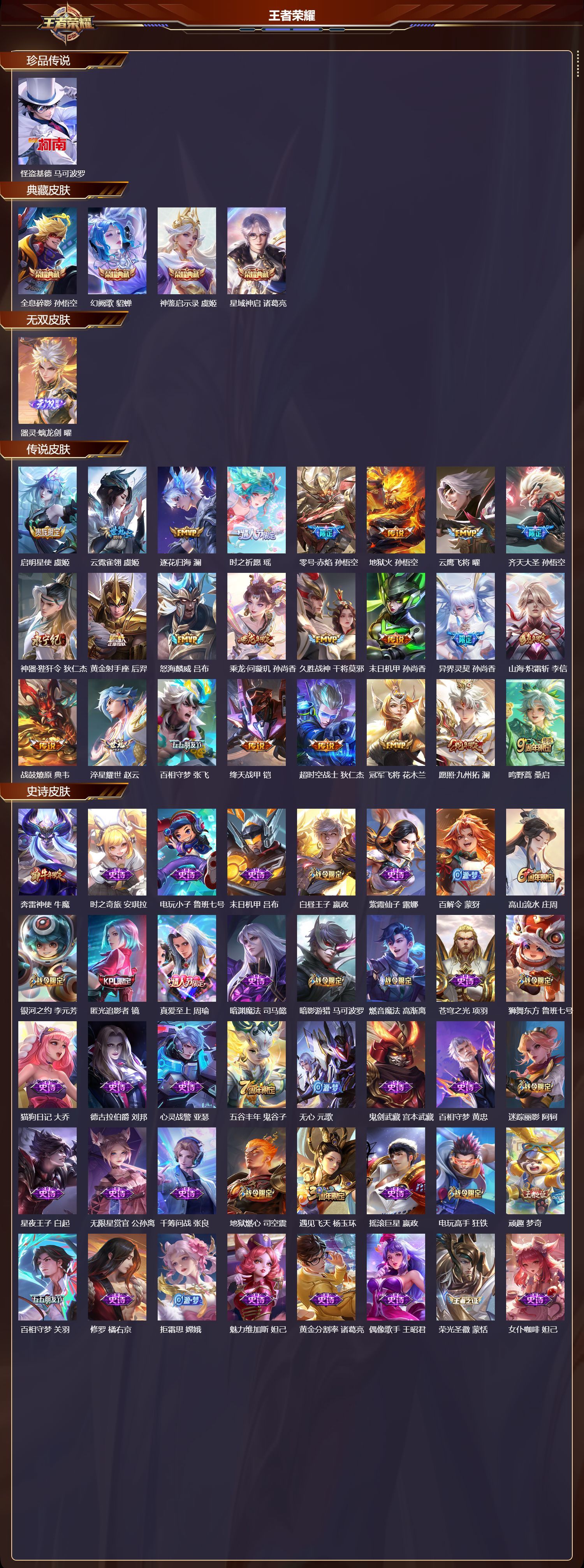 苹果QQ/最强王者/408皮肤/127英雄/4典藏/0珍品无双/1无双/1珍品传说/24传说/121