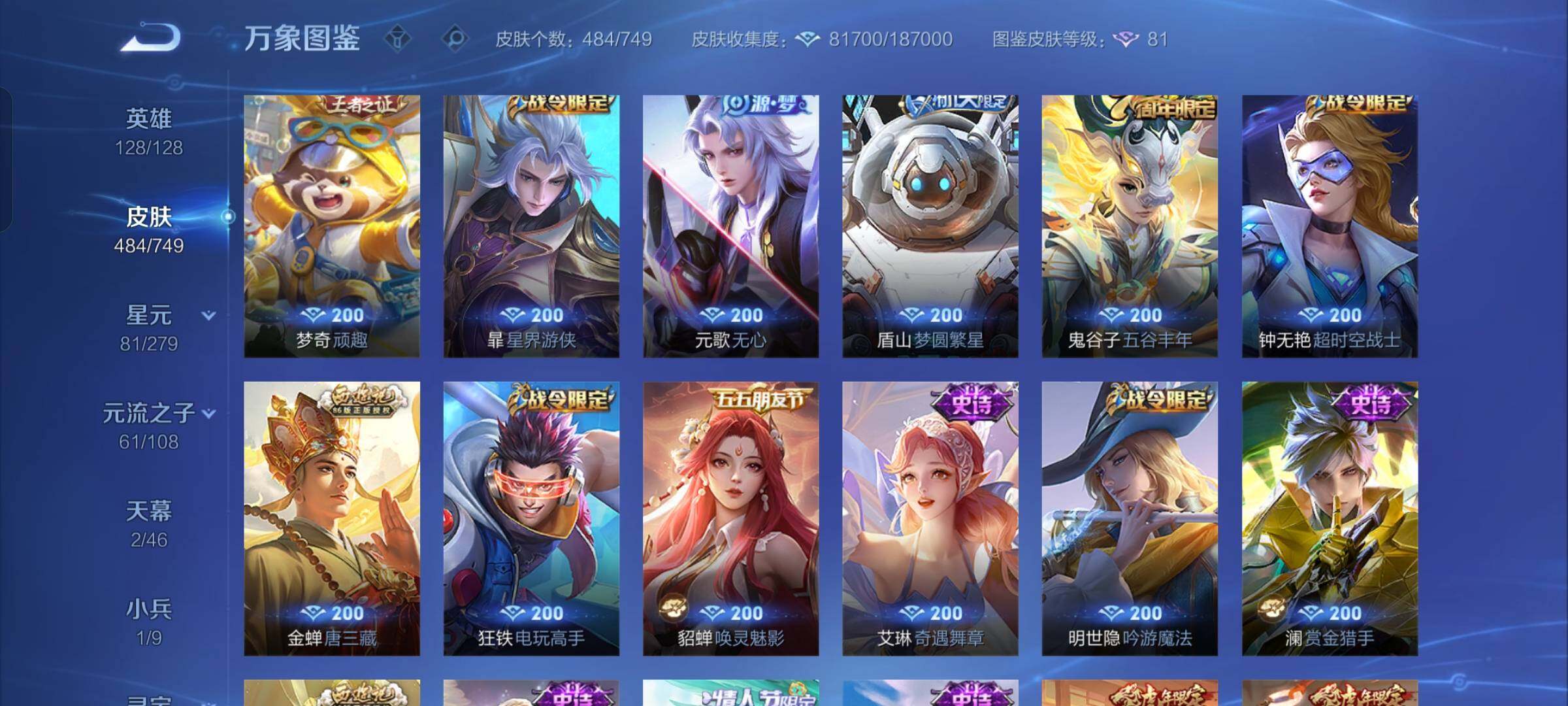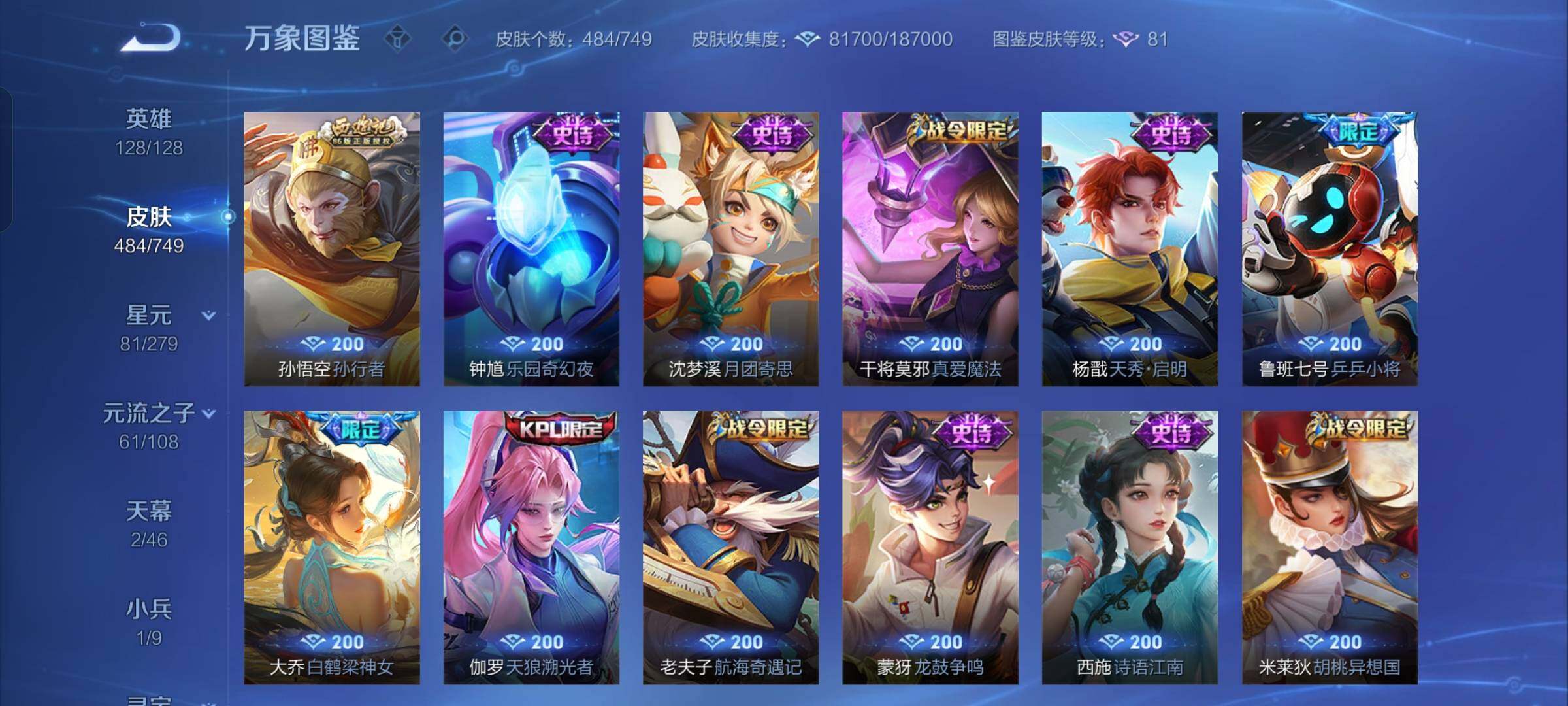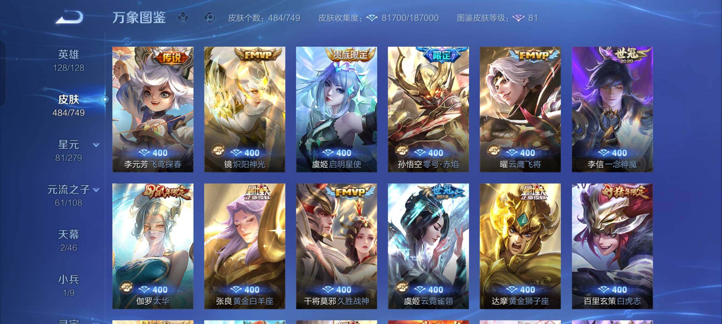 【精氪质量贵族v10·万战金标哪吒·准万战韩信·小兵雪境奇遇·3典藏·1无双·2珍品传说·55传说·6星传说·紫瑶·冥王哈迪斯·李逍遥·浮生妄·寅虎赤拳·白虎志·可二次】YXw9612-安卓Q-128英雄-484皮肤-24王者印记-300铭文-贵族积分27w【贵族10】【3典藏·1无双·2珍品传说·6星传说·55传说·2天幕·18按键·82个性戳戳】【因赛季更新游戏