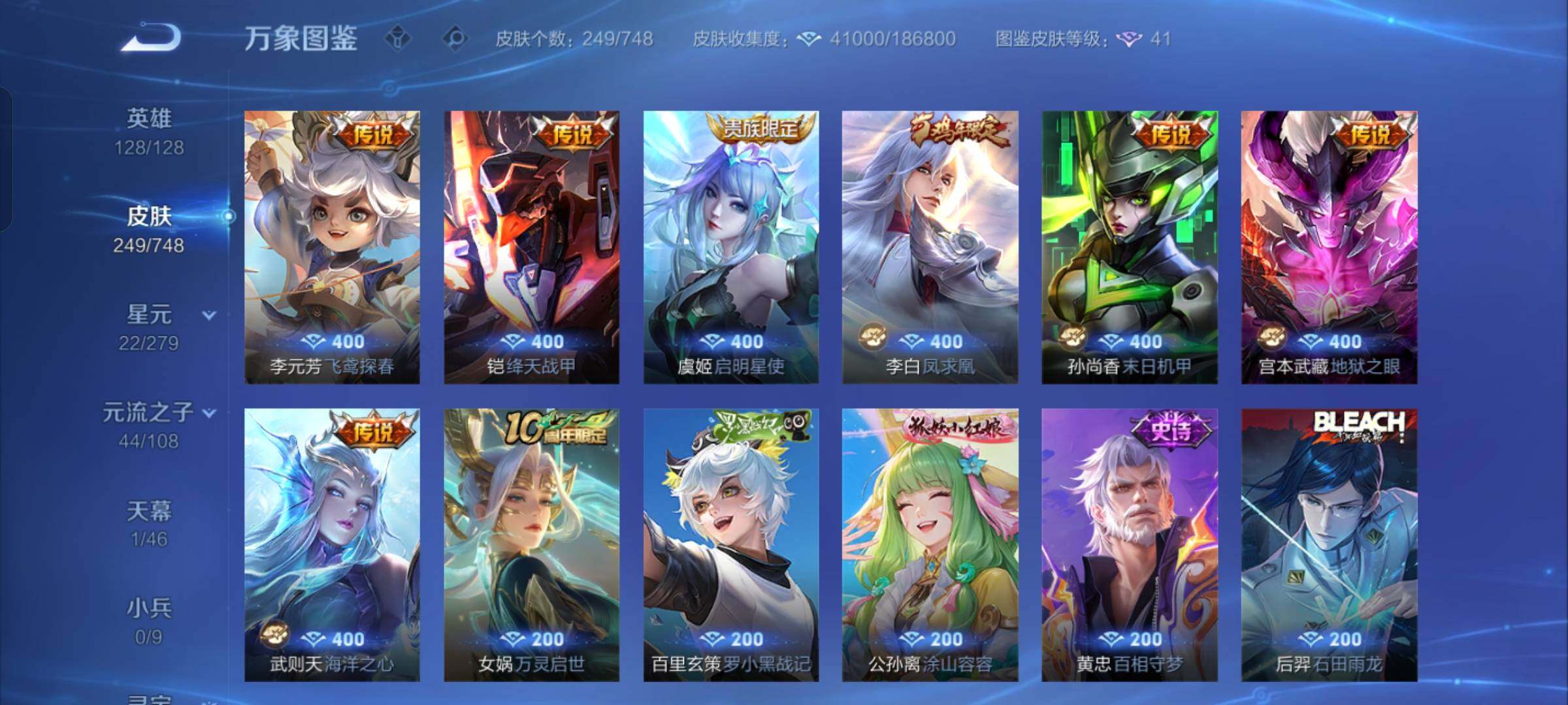 【精氪4无双v8·黑崎一护天幕·碎月剑心·器灵螭龙剑·天机白泽·神罪·武则天·怪盗基德·大耳狗之梦·酷洛米之心·朽木白哉·黑崎一护·浮生妄·可二次】YXw9615-安卓Q-128英雄-249皮肤-11王者印记-200铭文-贵族积分9w【贵族8】【1典藏·4无双·5珍品传说·1星传说·22传说·1天幕·34按键·252幸运值】【因赛季更新游戏段付以上号为准!】安卓Q