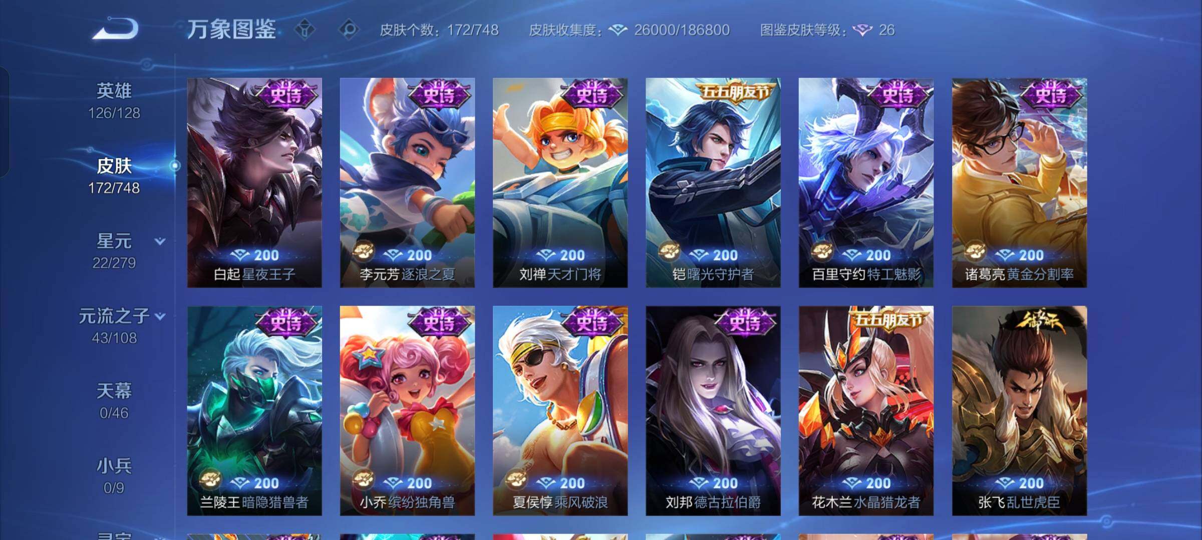 【精氪战力对抗路号·40段打野·万战金标马超·万战司空震·全皮司空震·器灵螭龙剑·大耳狗之梦·云诺千山·愿照山河定·乘龙淬吴钩·霜月吟·项羽无限倾心·可二次】YXw9619-安卓Q-126英雄-172皮肤-7王者印记-140铭文-贵族积分2w【贵族7】【1无双·1珍品传说·1星传说·14传说·5按键】【因赛季更新游戏段付以上号为准!】