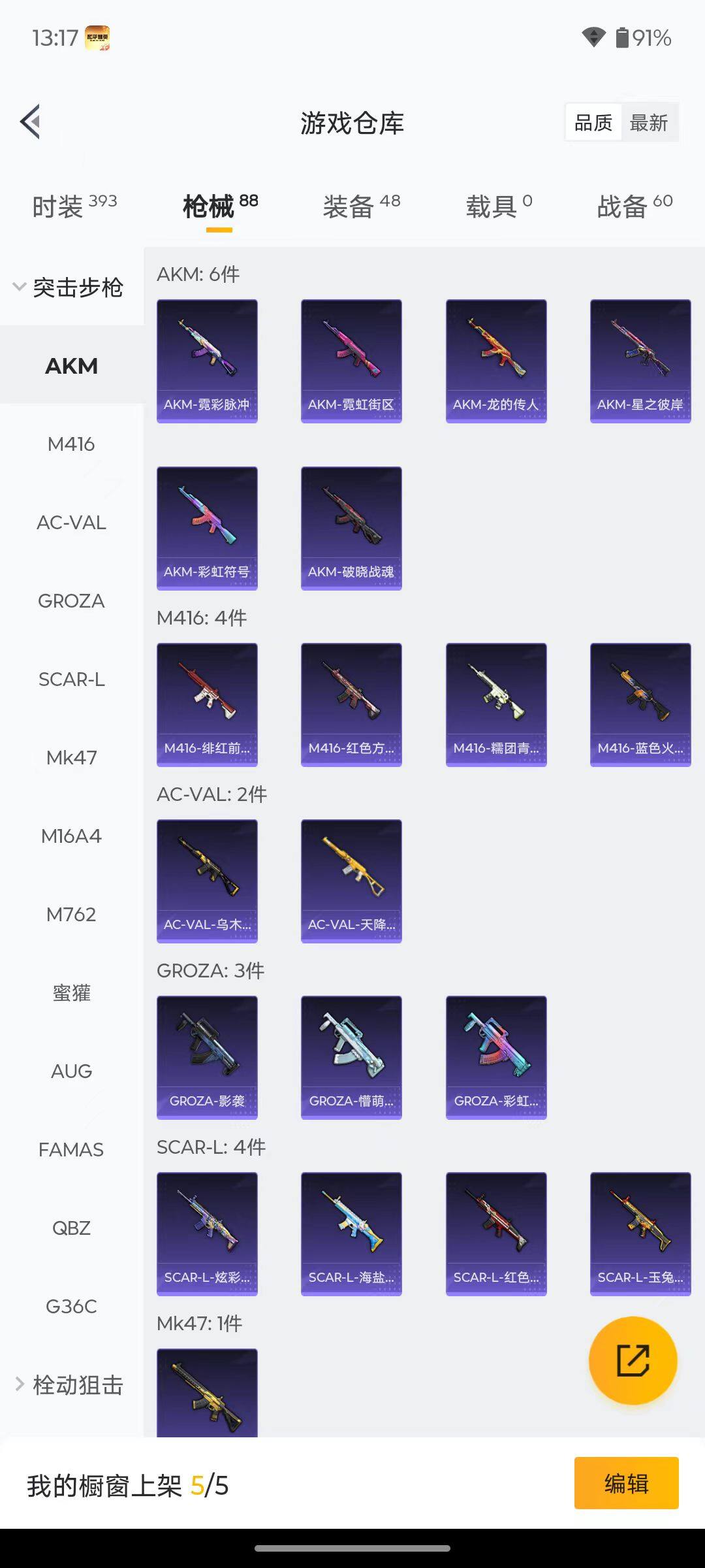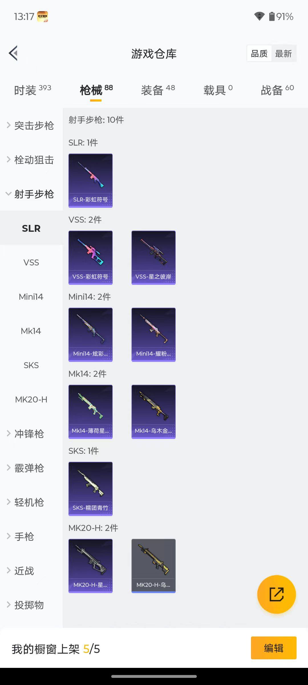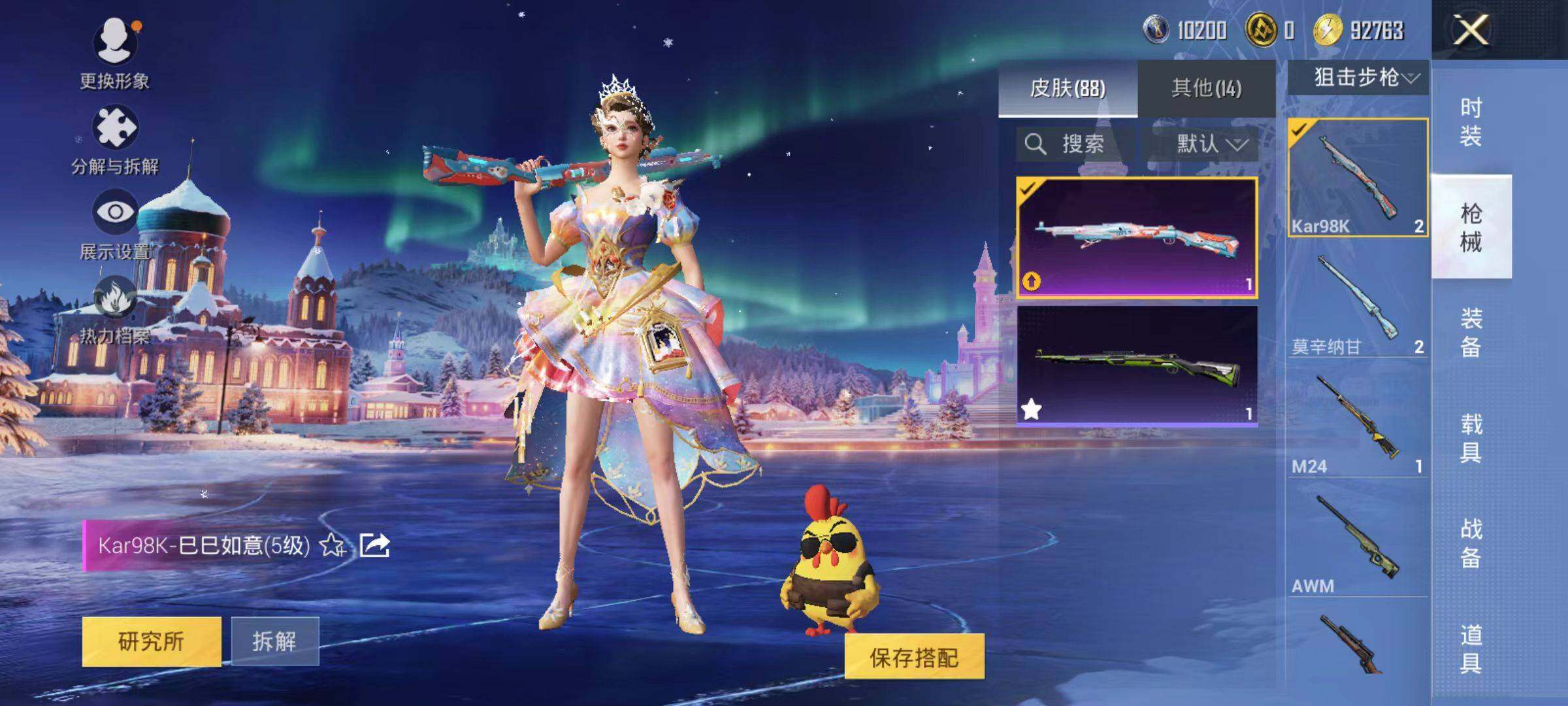 93套装/枪械2/装备48/战备60/王牌印记1/热力值22542/五级Kar