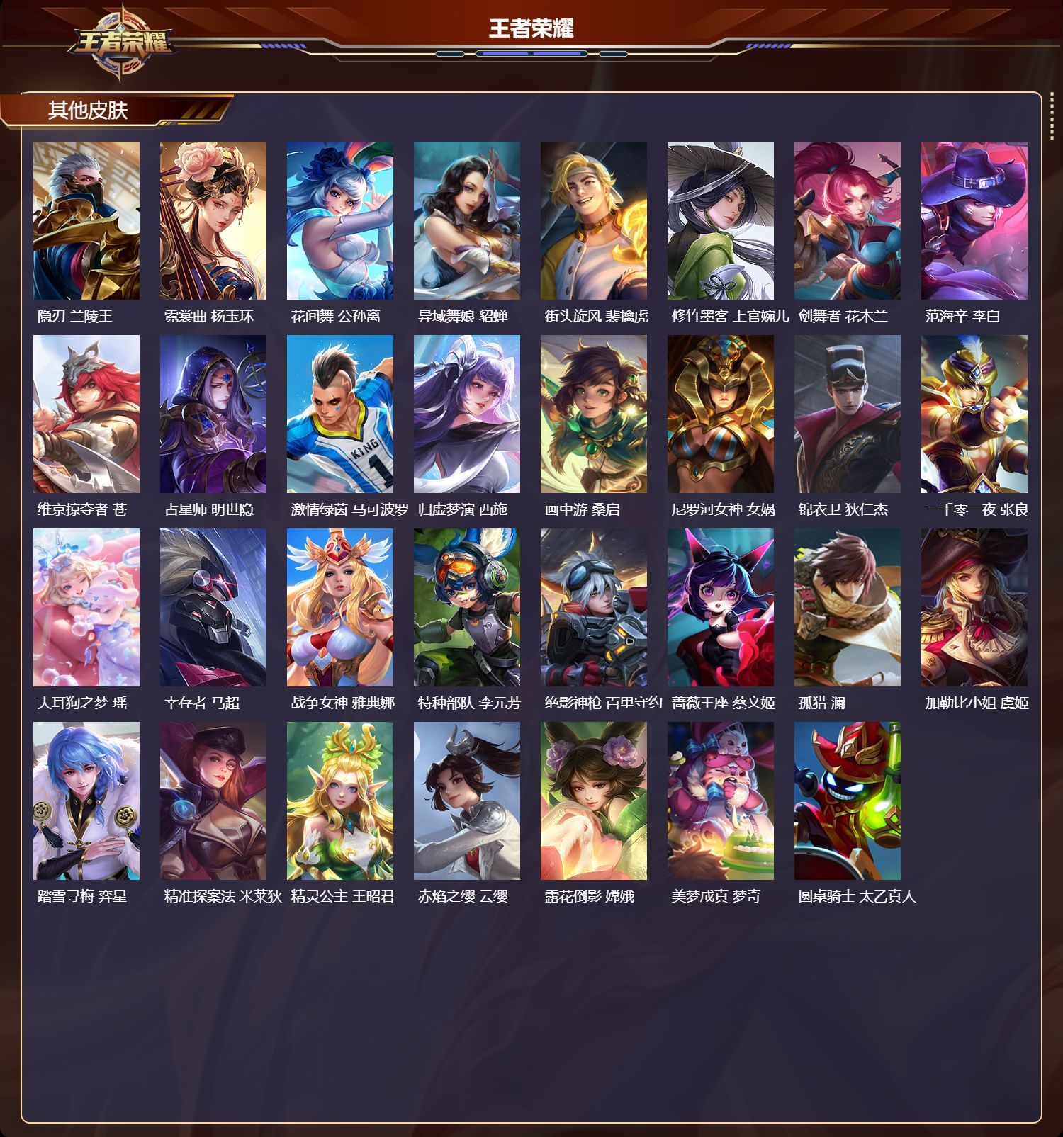 安卓QQ/至圣王者/241皮肤/127英雄/1典藏/0珍品无双/4无双/1珍品传说/12传说/70史