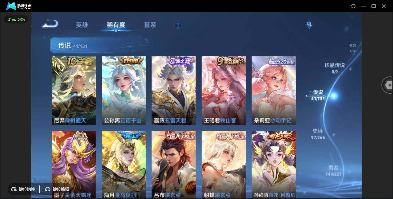 苹果Q-有二次-贵10-127英雄-359皮肤-3典藏-41传说-1无双-140限定-97史诗-2星元-57按键-2天幕