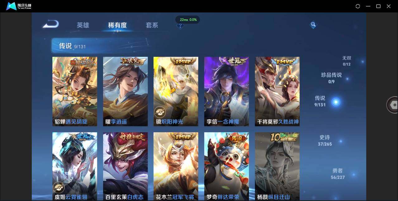 皮肤133 英雄125 永恒钻石 传说9 其他皮肤53-