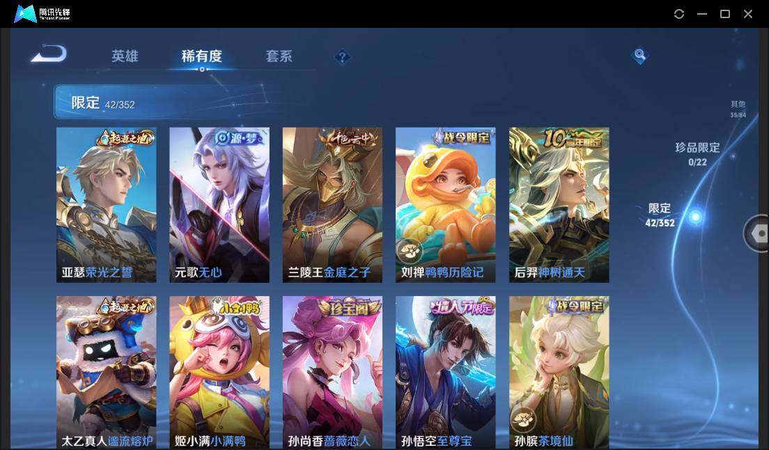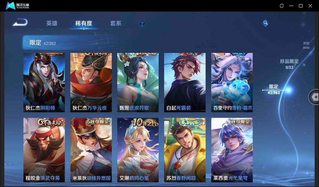 皮肤147 英雄126 非凡王者 传说11 其他皮肤43-