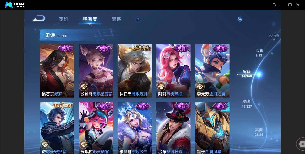 皮肤109 英雄111 非凡王者 珍品传说1 传说6 其他皮肤36-