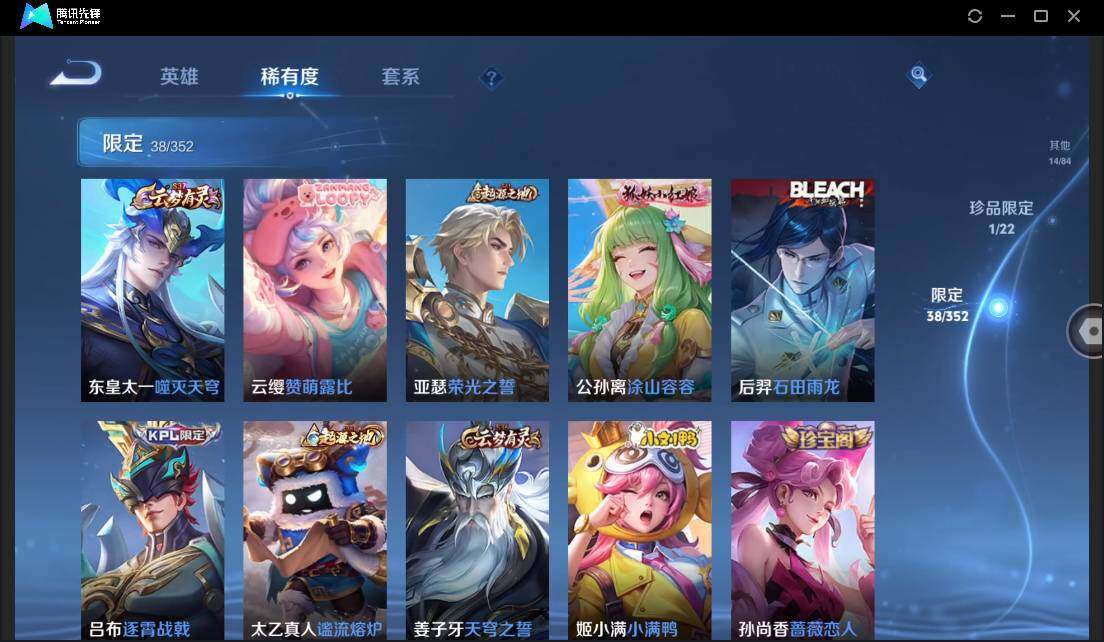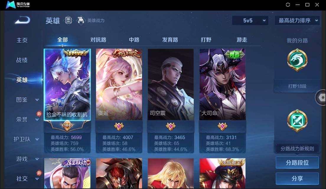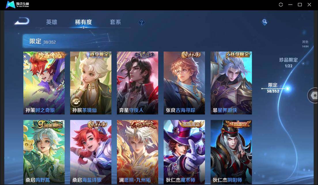 孙策时之奇旅-安卓QQ-有二次-贵6-125英雄-112皮肤-1珍品传说-7传说-1星元-38限定-8按键