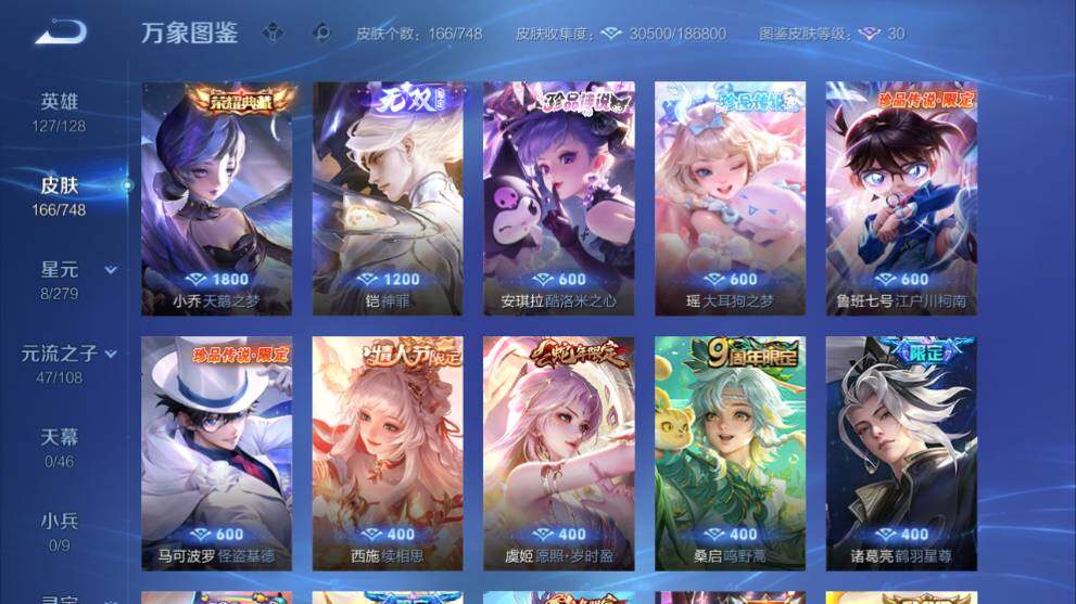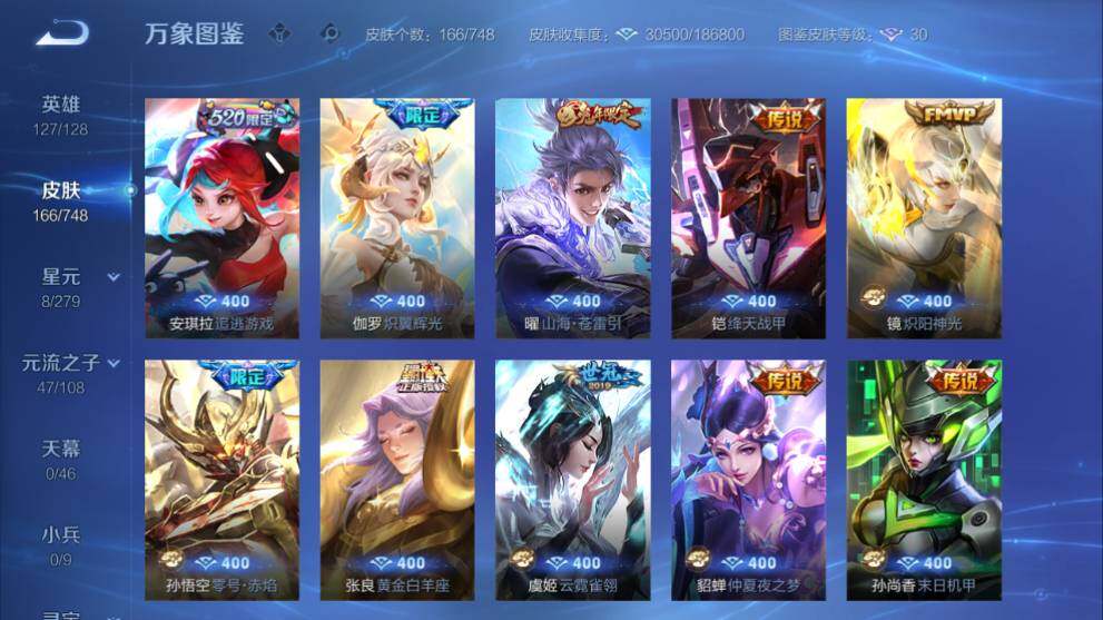 安卓WX-V7-166皮肤-1典藏皮肤-1无双-4珍品传说-14传说-57史诗
