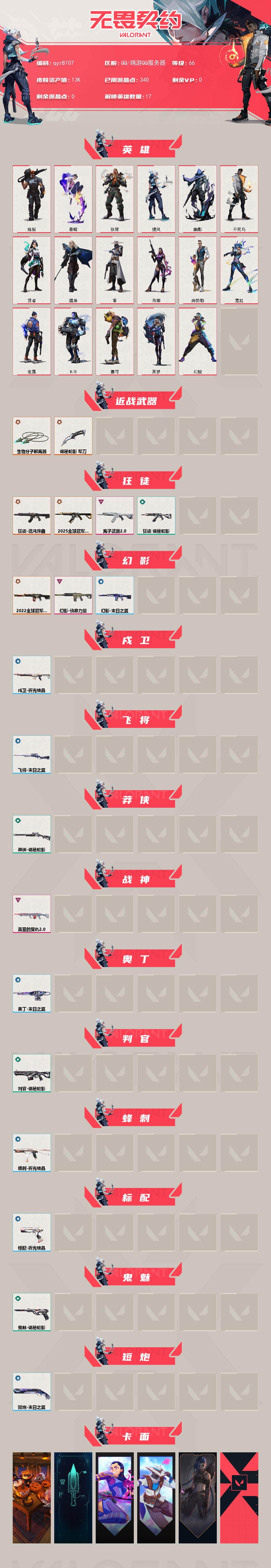【qyz8107】25冠军狂徒 22冠军 混沌狂徒离子狂徒侦查力量 生物分子解离器 qyz8107 亮点皮肤: 幻影-2022全球冠军赛 近战武器皮肤: 生物分子解离器,诡秘蛇影 步枪皮肤: 幻影-侦察力量,狂徒-混沌序曲,狂徒-离子武器2.0,2025全球冠军赛 狂徒 机枪皮肤: 战神-盖亚的复仇2.0 亮点: 【qyz8107】【英雄】:幻棱,炼狱,暮蝶,铁臂,捷风,幽影,不死鸟,贤者,猎枭,零,芮娜,尚勃勒,霓虹,夜露,K/O,盖可,黑梦【近战 武器】:近战武器-生物分子解离器,近战武器-
