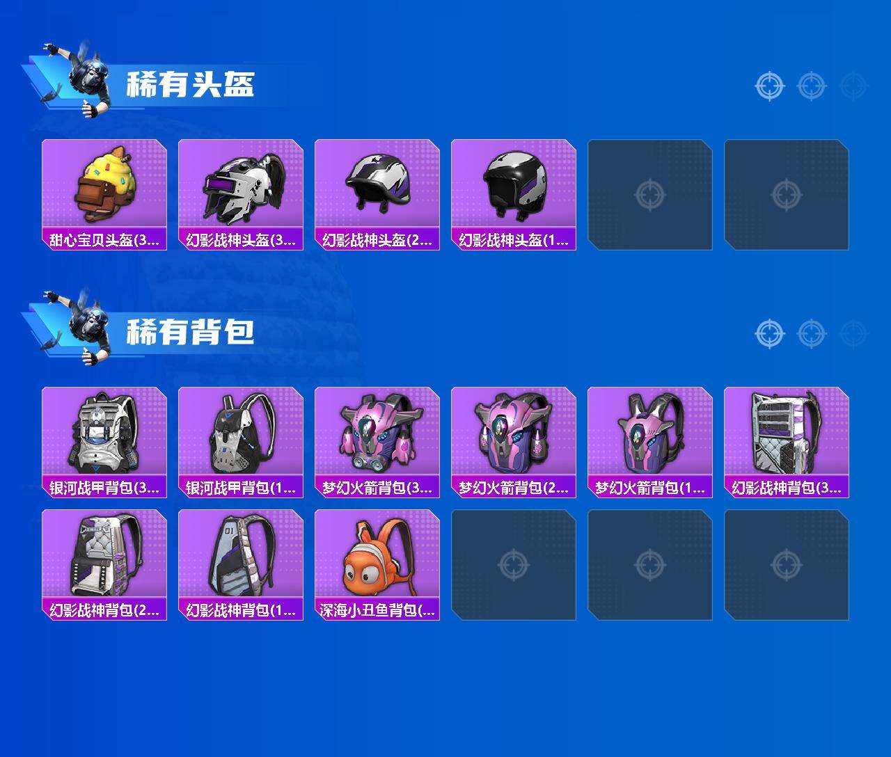 素材号/梦幻火箭/放客神游/都市猎人/小丑鱼/胖达团团/暗影哥特/11粉装-7特效枪-1载具