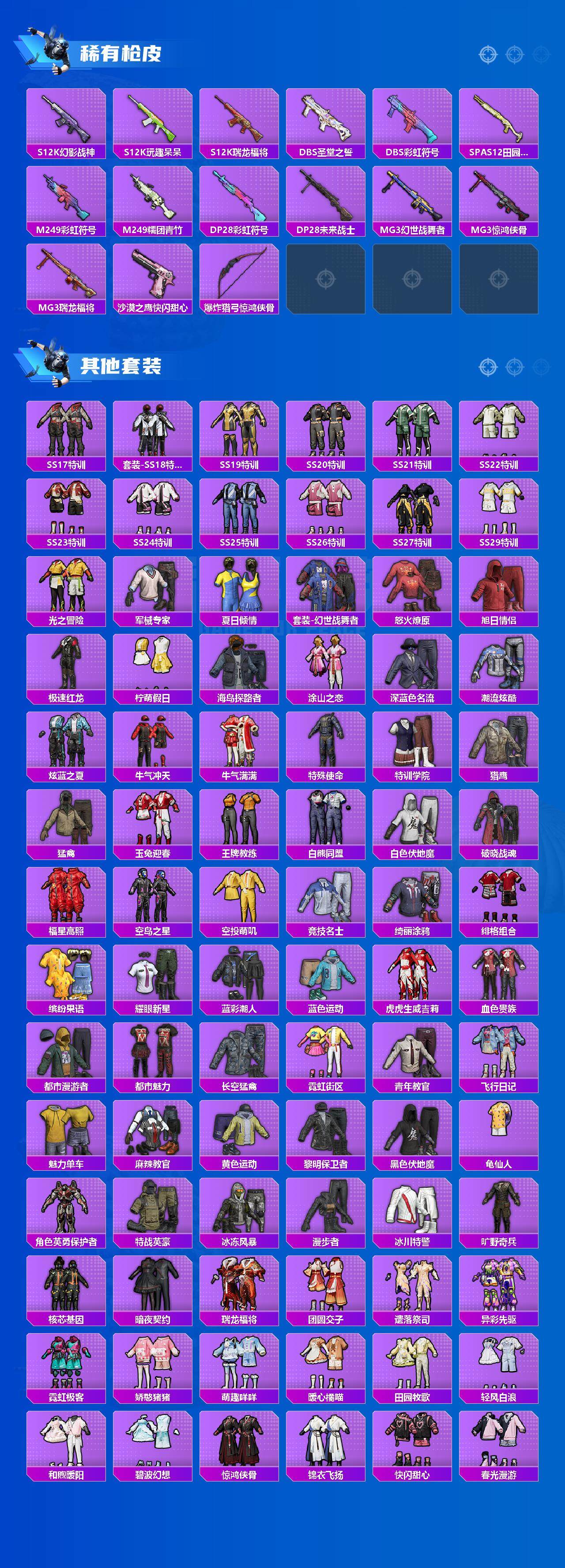 【粉色枪皮等级】:M416-五爪金龙(七级),UMP45-相思残雪(七级),Kar98K-未来歌姬(五级),Kar98K-巳巳如意(三级),DP-28-豹影疾电(五级)