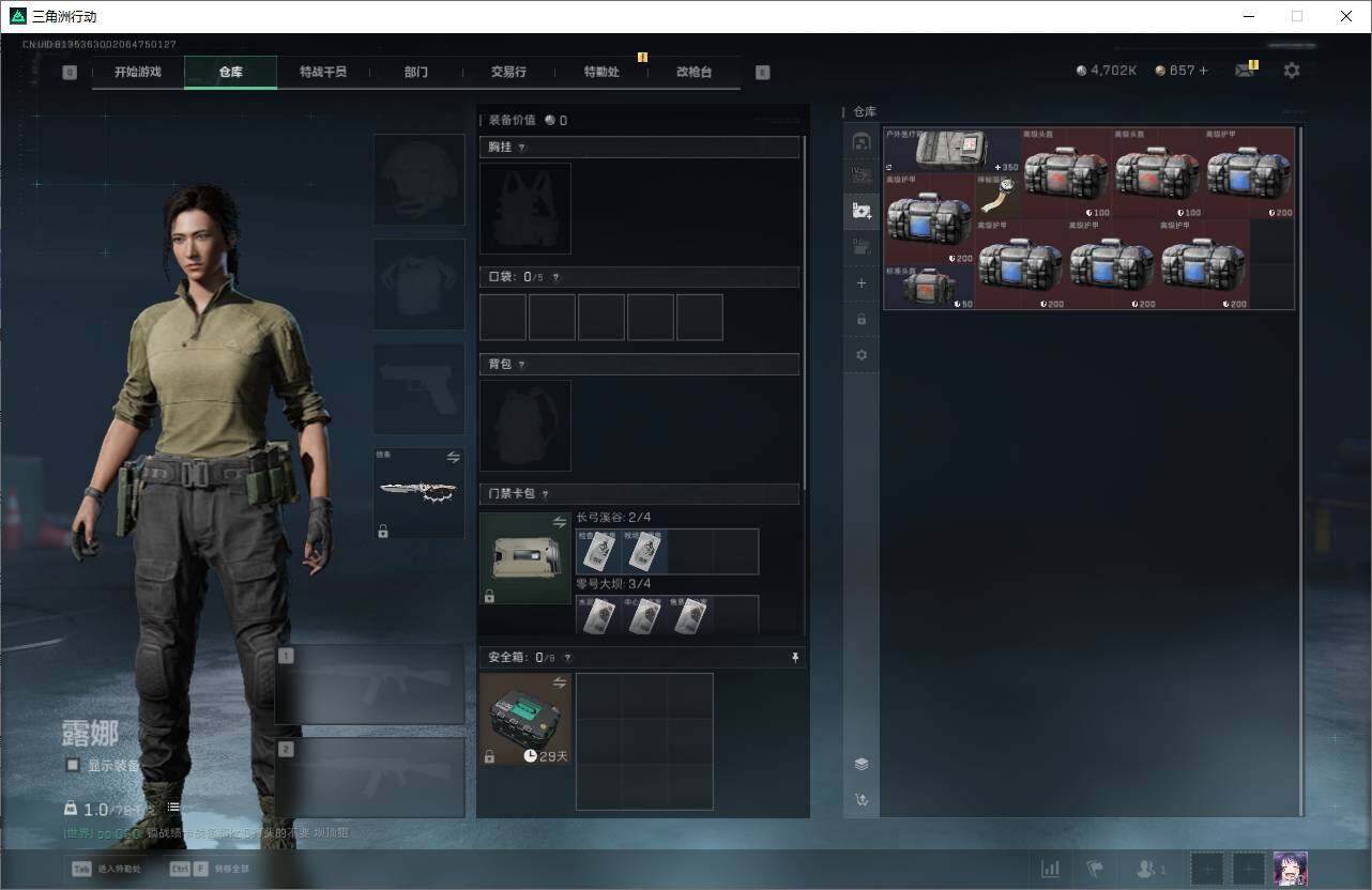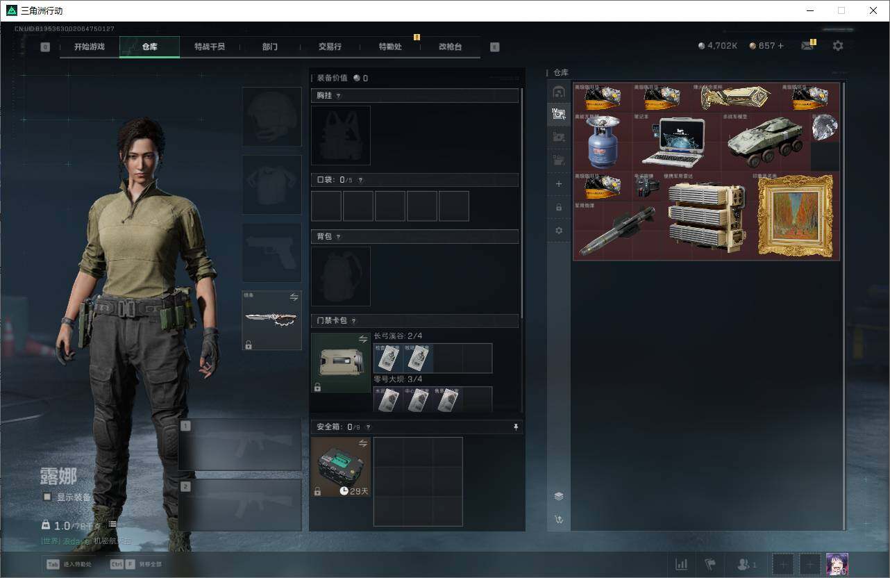 【SJZF4819】总资产(M):65M/哈夫币(K):4792K/哈夫币(K):4792K/传说枪皮数:28/全面战场等级:40_段位:校官/烽火地带等级:60_段位:钻石/骇爪-维什戴尔/威龙-壮志凌云/蜂医-送葬人·无题密令/无名-夜鹰/深蓝-不破誓约/红狼-电锯惊魂/露娜-金牌射手/近战-影锋/近战-信条/近战-黑鹰/M4A1突击步枪-阿米娅/ASh-12战斗步枪-鹅鸭杀/SG552突击步枪-运动员/AK-12突击步枪-夜鹰/AK-12突击步枪-特斯拉线圈/SCAR-H战斗步枪-铁艺苍穹