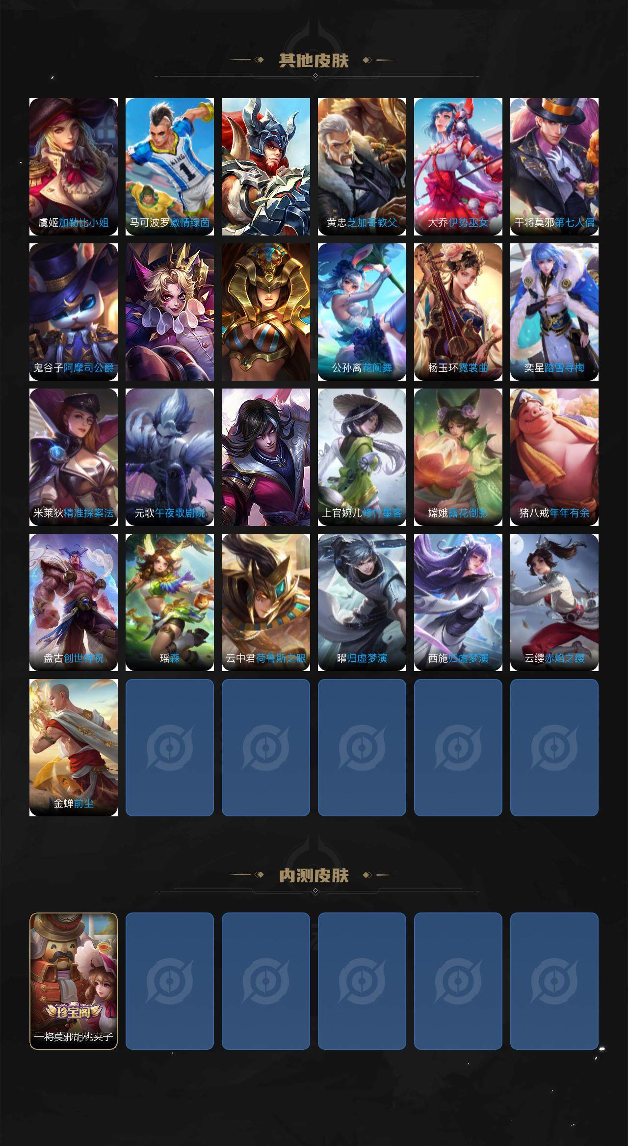 皮肤229 英雄127 荣耀黄金 荣耀典藏2 无双皮肤3 珍品传说4 传说22 其他皮肤70-