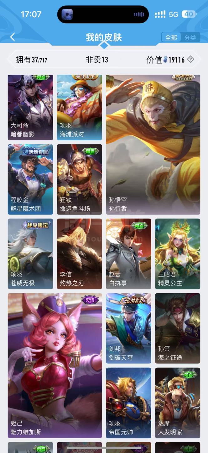 安卓QQ-小国项羽 颠覆历史2244 1.5项羽 1.1兰陵王 皮肤33 英雄57 尊贵铂金 无双皮肤1 其他皮肤13-