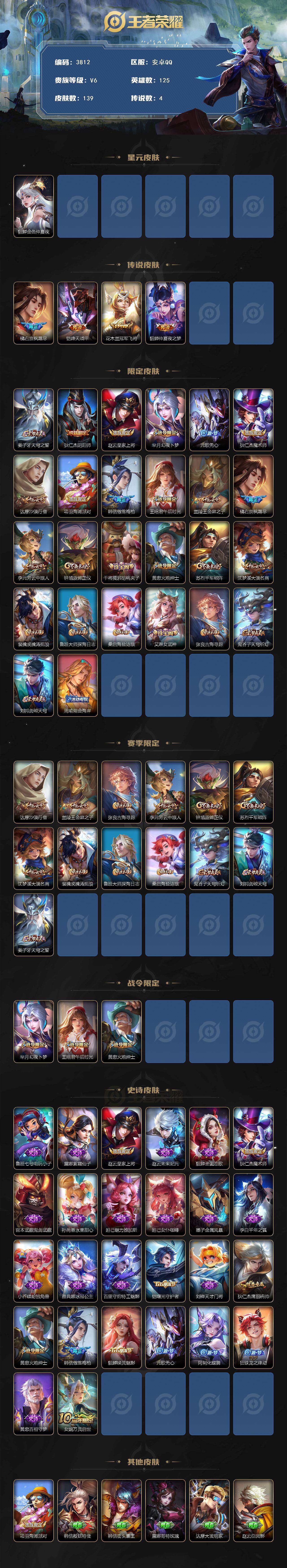 /安卓Q-V6-至尊星耀II段位-125英雄-139皮肤-4传说-26史诗