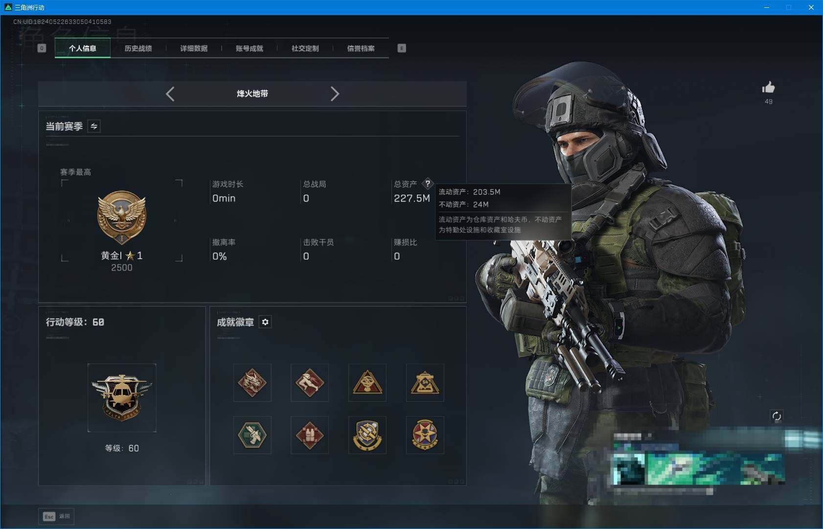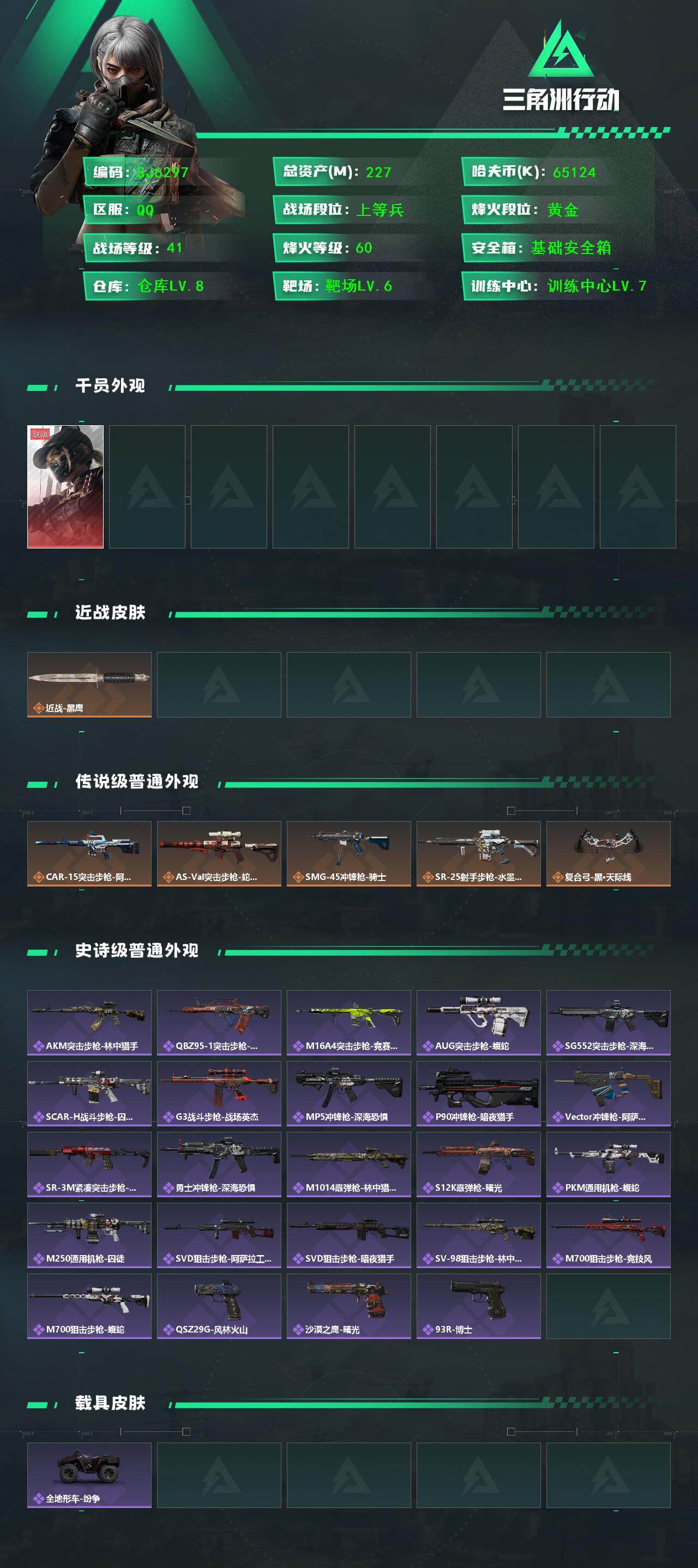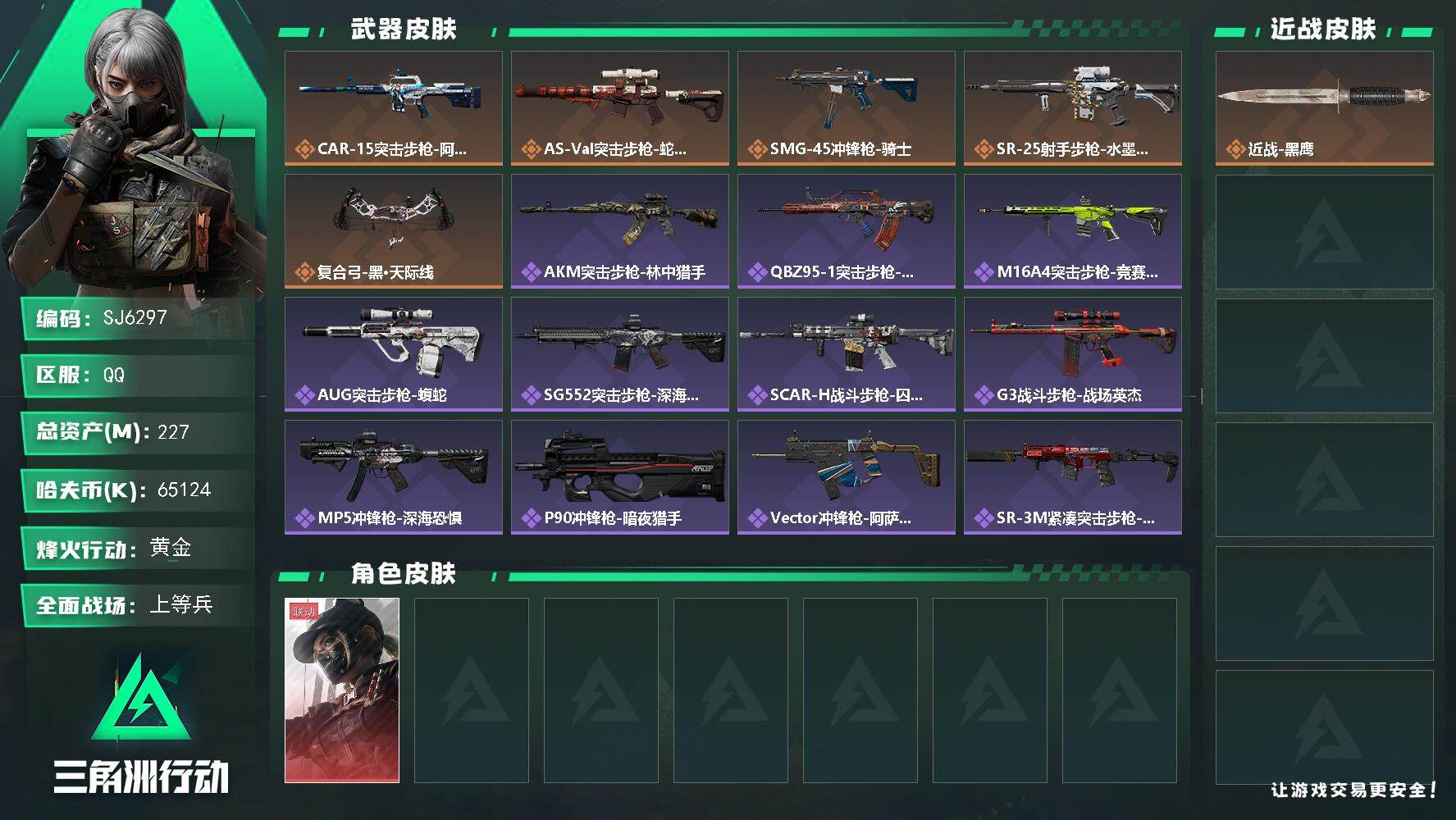 总资产(M):227M/哈夫币(K):65124K/哈夫币(K):65124K/全面战场等级:41_