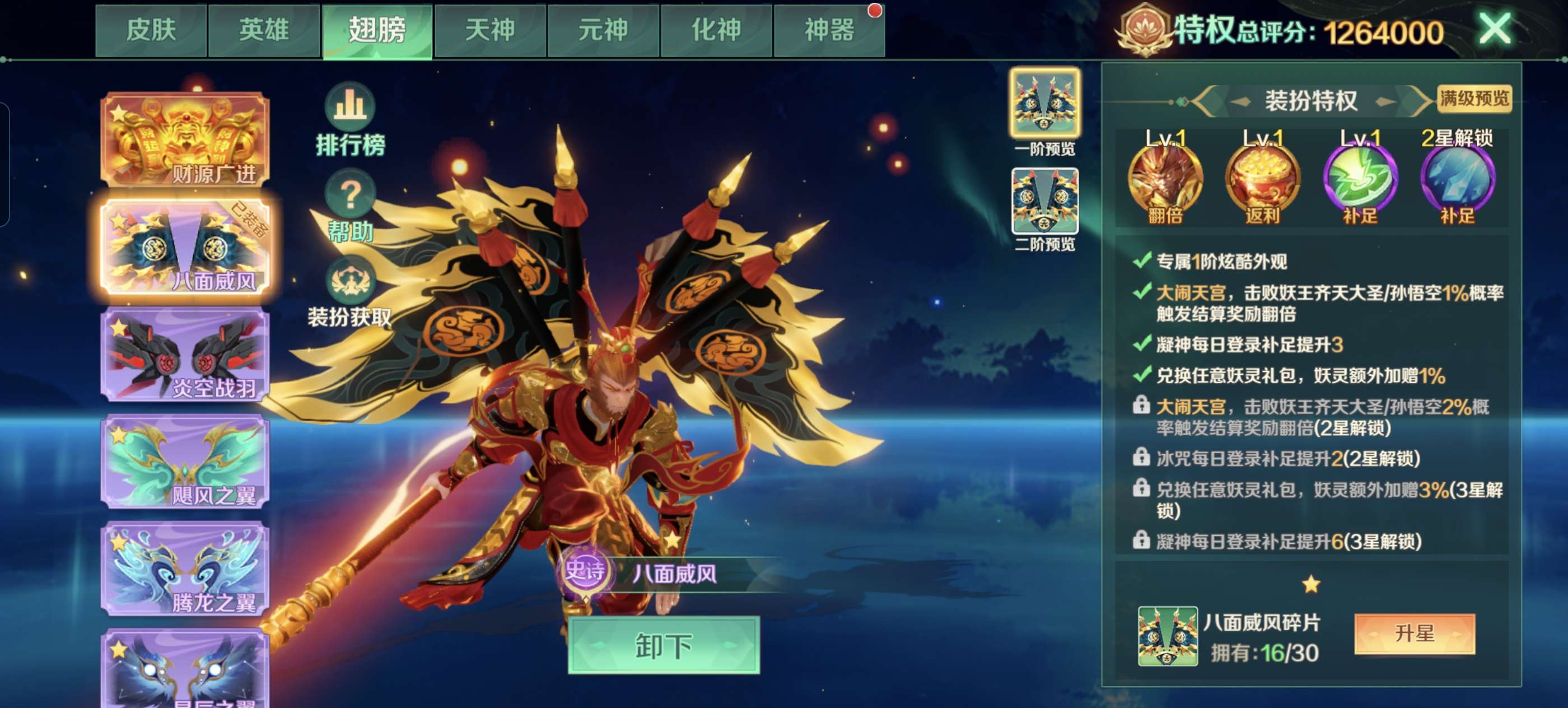 极品V5,百万评分,大量皮肤翅膀,大量道具,猴子神龙天神,官方号,安卓苹果互通!