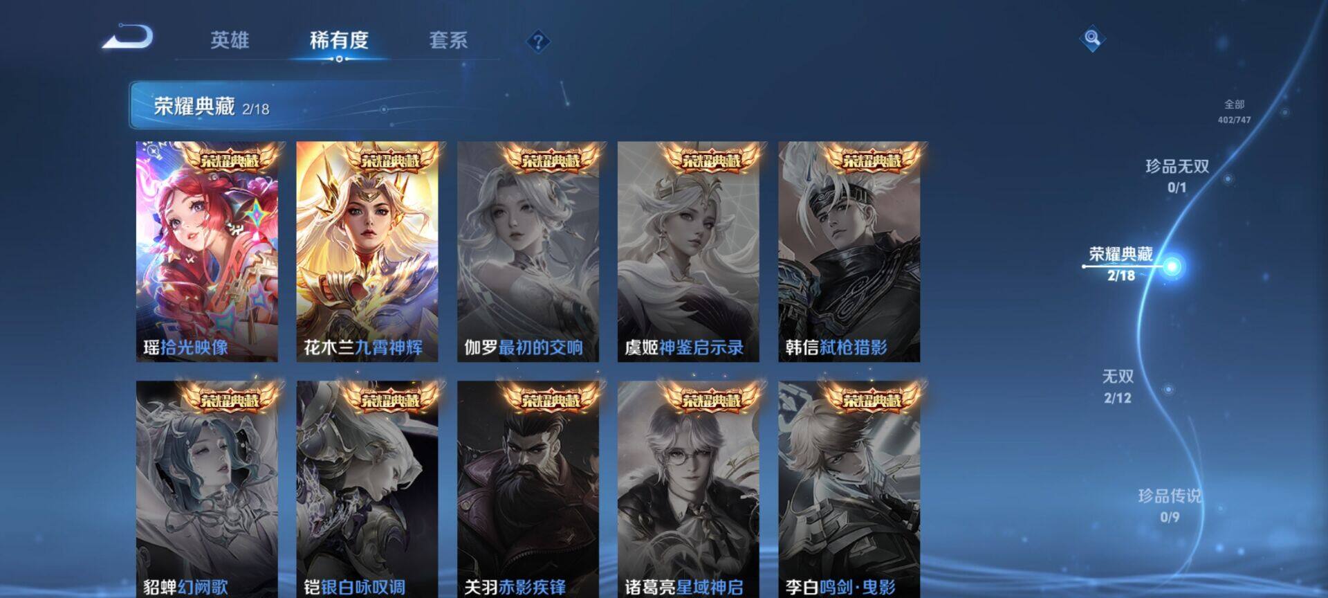 皮肤402 英雄127 传奇王者 荣耀典藏2 无双皮肤2 传说26 其他皮肤134-