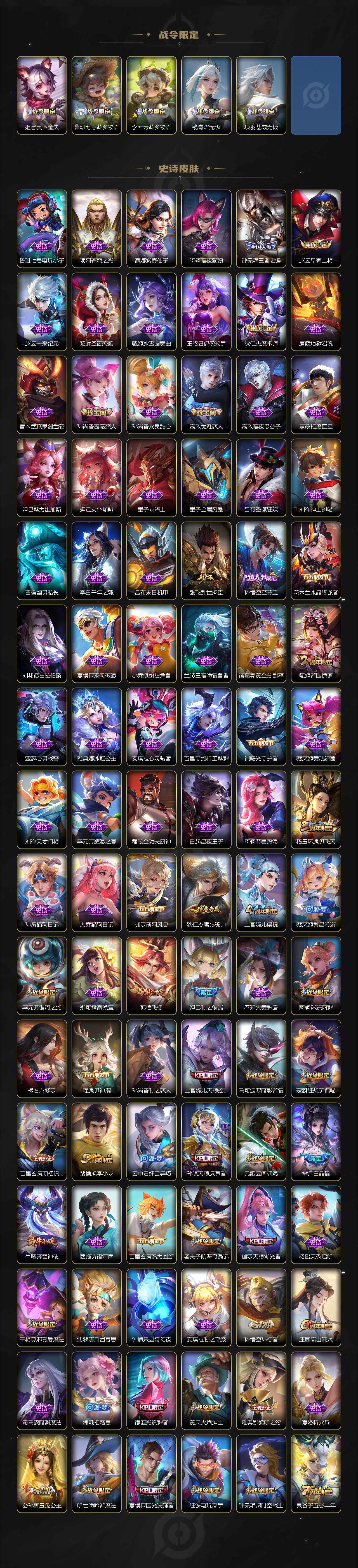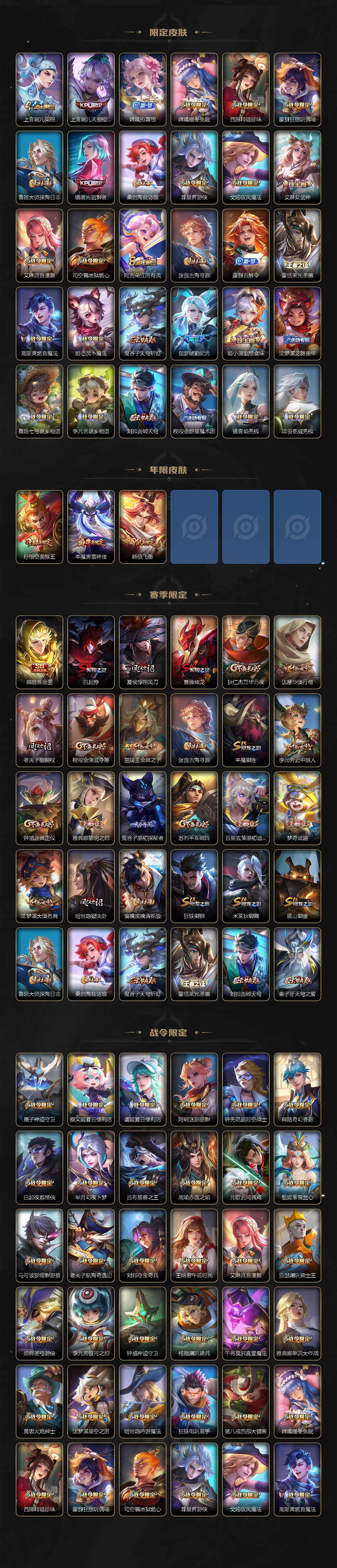 皮肤383 英雄128 无双王者 荣耀典藏3 珍品传说1 传说7 其他皮肤166-