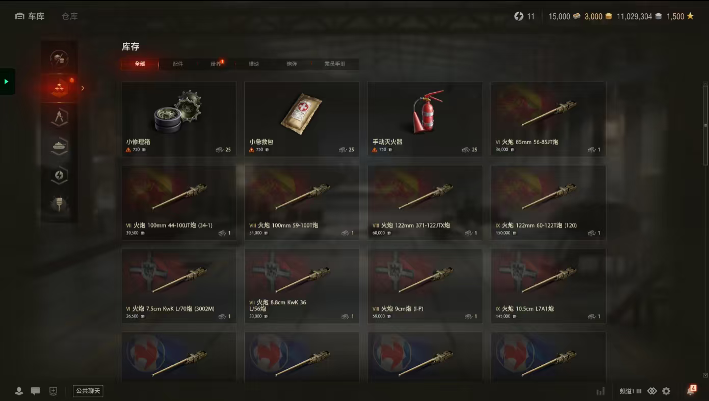 银币1100万、债券15000、金币3000、6配件1辆9级特种车:幻影3辆10级银币车:豹I、