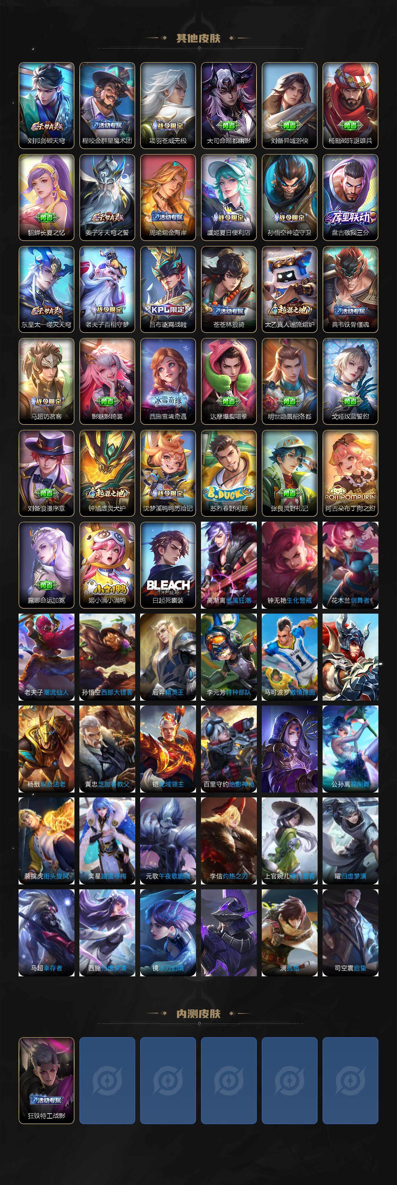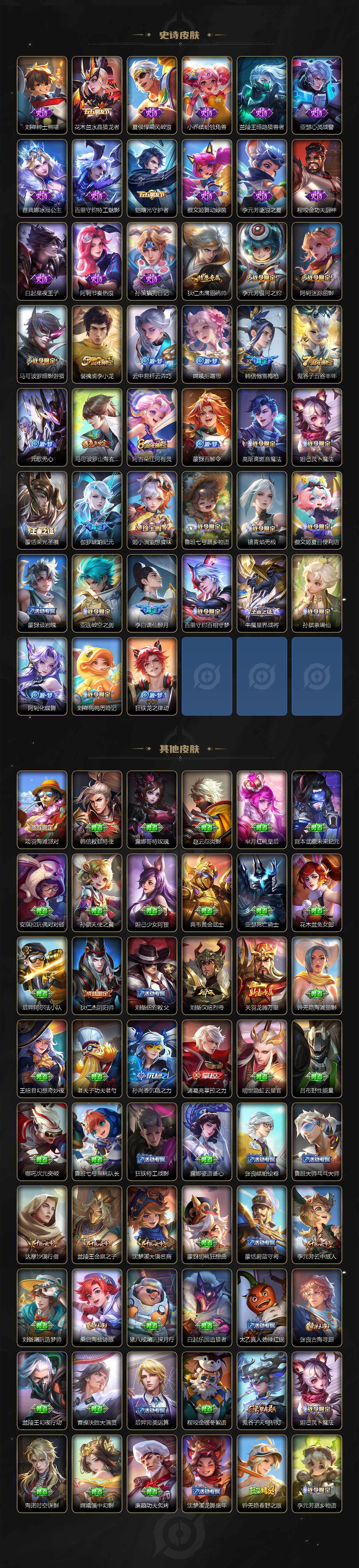 皮肤177 英雄126 永恒钻石 荣耀典藏1 传说6 其他皮肤59-