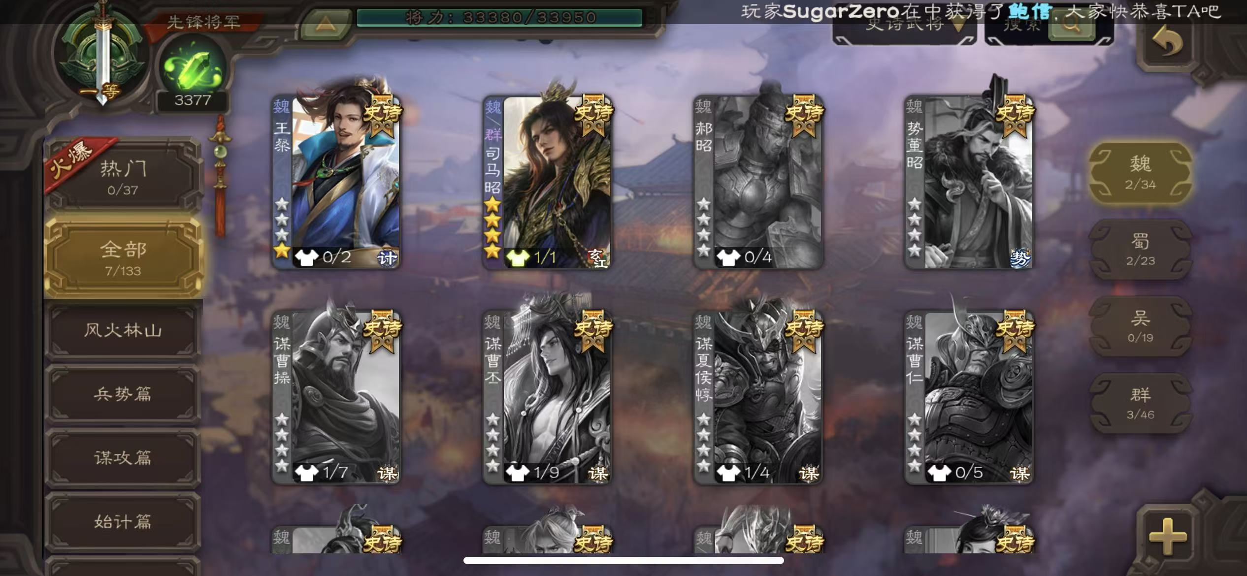 史诗武将数量: