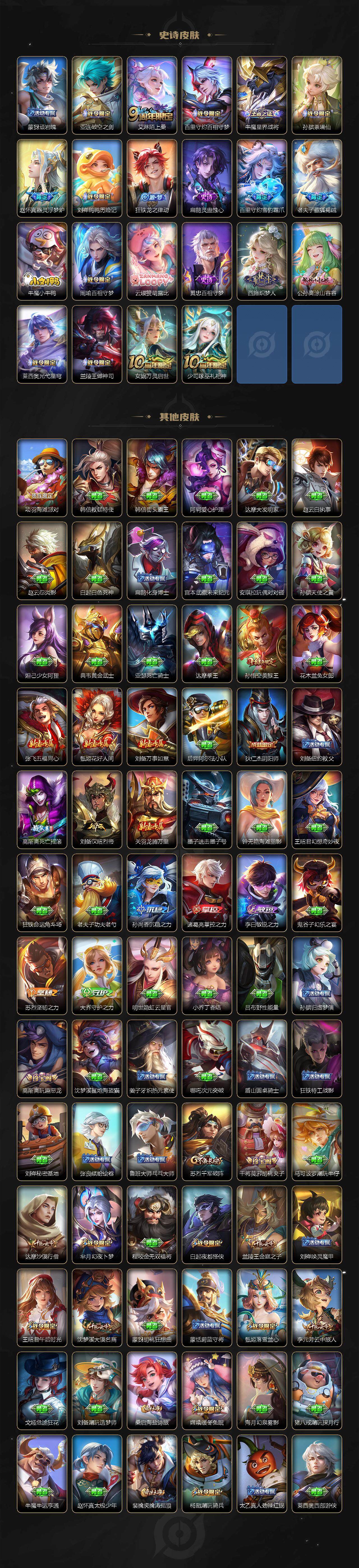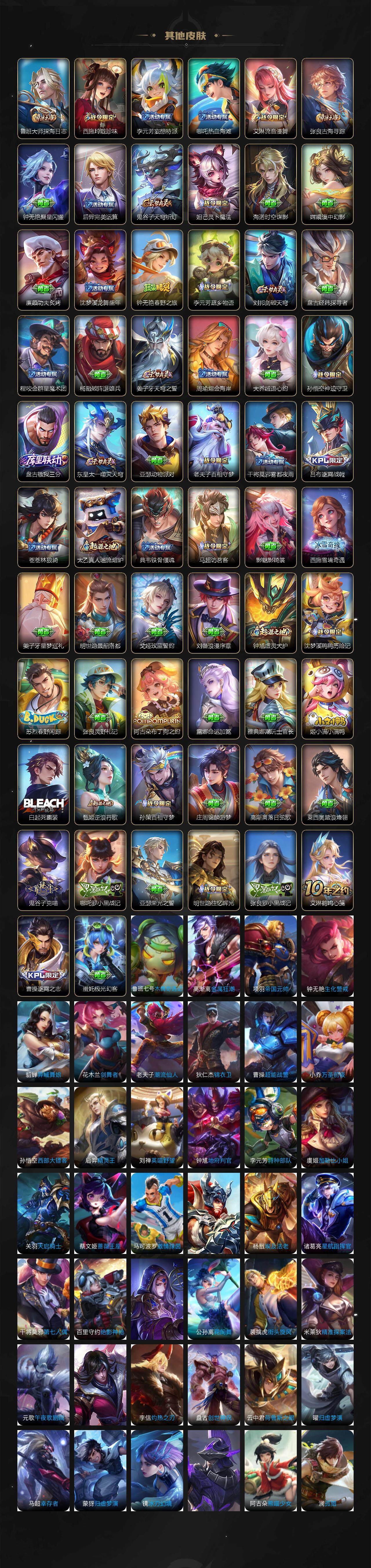 【英雄全皮】:刘禅全皮,李信全皮,马超全皮,蒙犽全皮,司空震全皮,赵怀真全皮,戈娅全皮,影全皮
