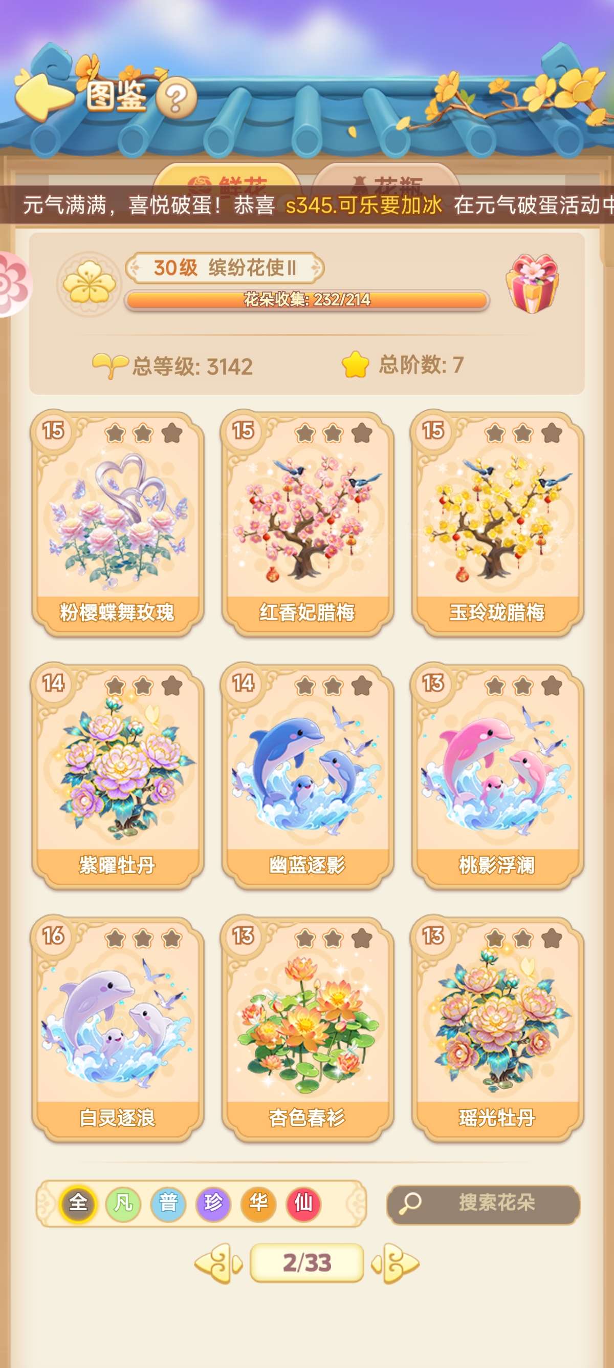 花圃全开,花坊剩两页,元宝14700 宝钞78 ,花灵石三百个,会员vip全开