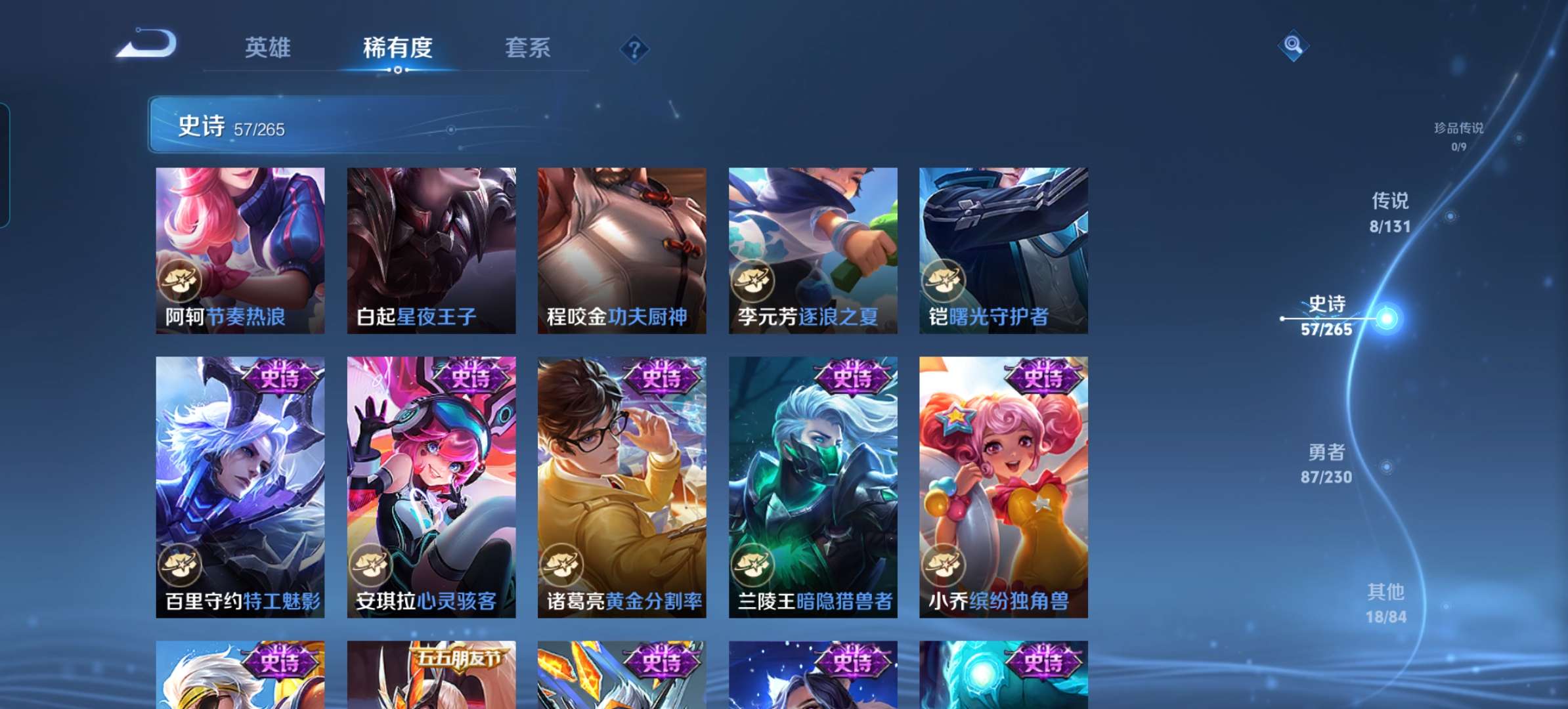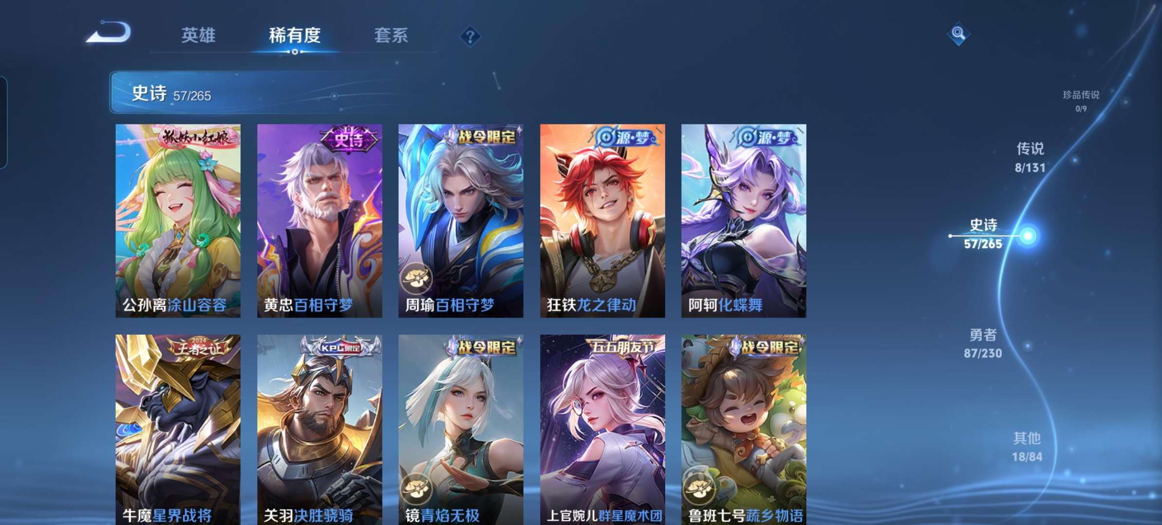 皮肤170 英雄126 荣耀王者 传说8 其他皮肤68-急出,价格好说,热门打野,带妹打野都有