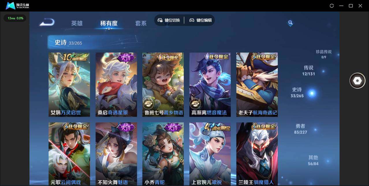 1862782 王者荣耀账号 安卓Q-V7-最强王者段位-126英雄-187皮肤-2典藏皮肤-1无双-12传说-33史诗