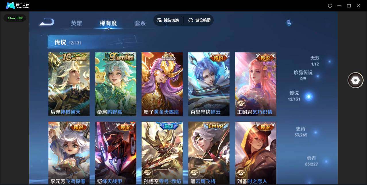 【传说皮肤】:后羿神树通天,桑启鸣野蒿,墨子黄金天蝎座,百里守约碎云,王昭君乞巧织情,李元芳飞鸢探春,铠绛天战甲,孙悟空零号赤焰,曜云鹰飞将,刘备时之恋人,虞姬云霓雀翎,后羿黄
