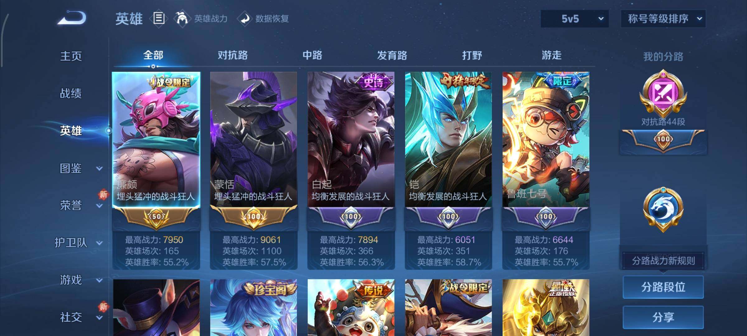 /可换绑【性价比优质号 对抗路44段 金标廉颇蒙恬 双典藏 时雨天司 虎年全套 神威 多传说限定号】 11按键,1星传说,1天幕,16王者印记,满级铭文,可二次CD15663,安卓Q-V8-348皮肤-2典藏皮肤-19传说-104史诗【英雄全皮】:刘禅全皮,达摩全皮,孙权全皮,李信全皮,鲁班大师全皮,蒙恬全皮【荣耀典藏】:孙悟空全息碎影,铠银白咏叹调【星元皮肤】:狄