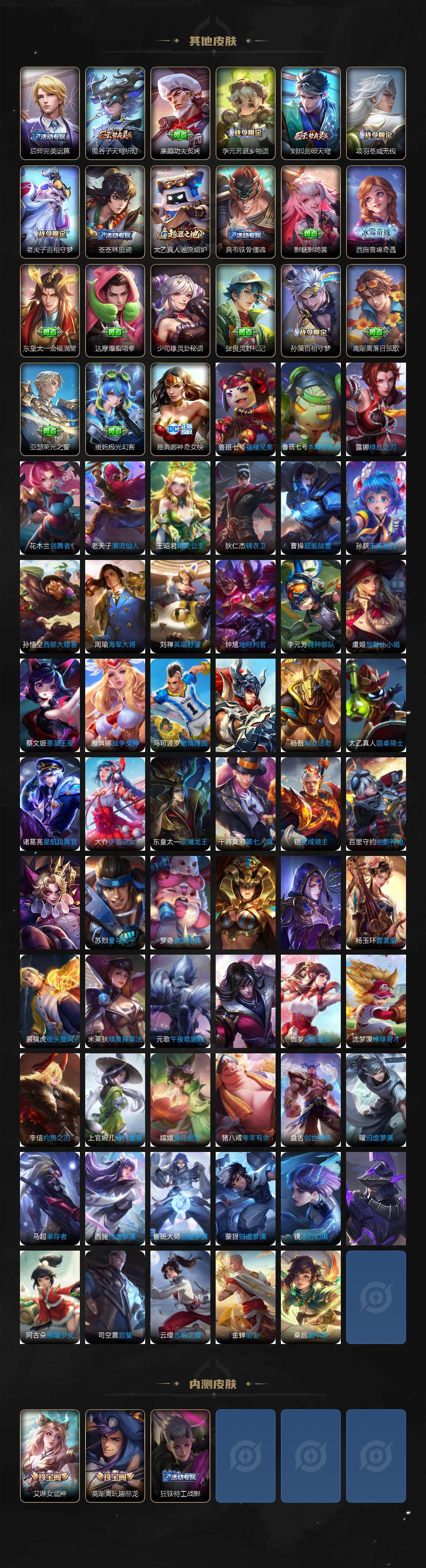 皮肤244 英雄127 至圣王者 荣耀典藏1 传说13 其他皮肤102-iOS 244皮肤1典藏皮肤13传说【金标诸葛亮】赤影疾锋 白虎志 武陵仙君