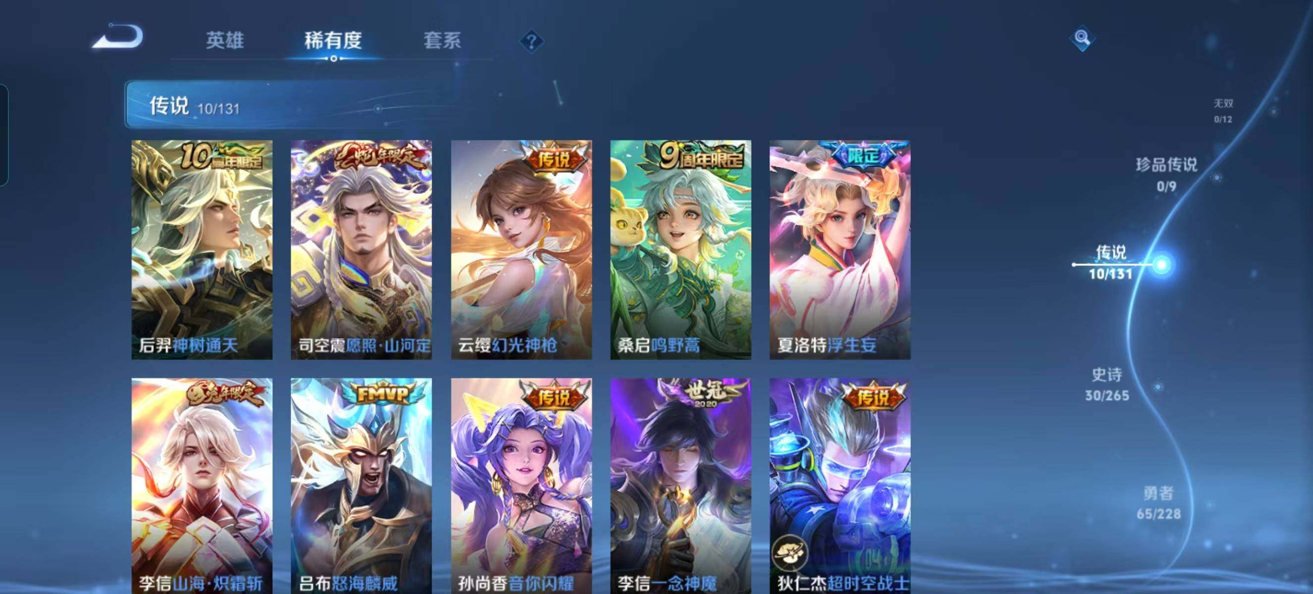 123皮肤10传说 浮生妄 山海炽霜斩 神树通天 愿照山河定 怒海麟威 音你闪耀 一念神魔 超时空战士 幻光神枪 鸣野蒿
