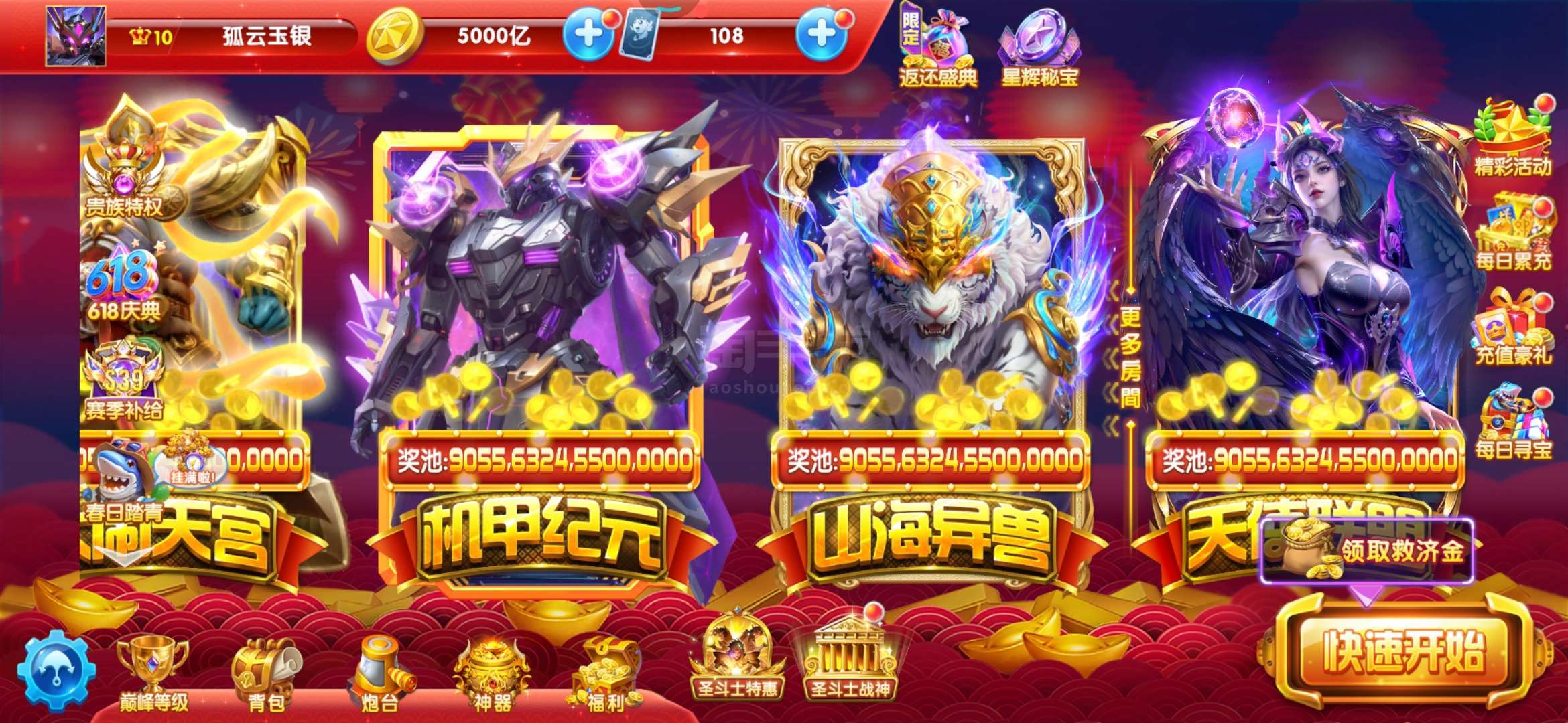 每天可以领将近五百万,炮台多多,就等爆发