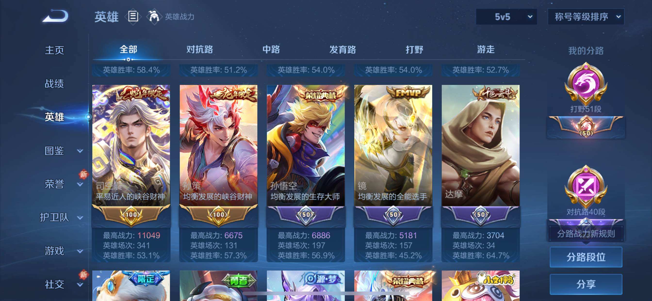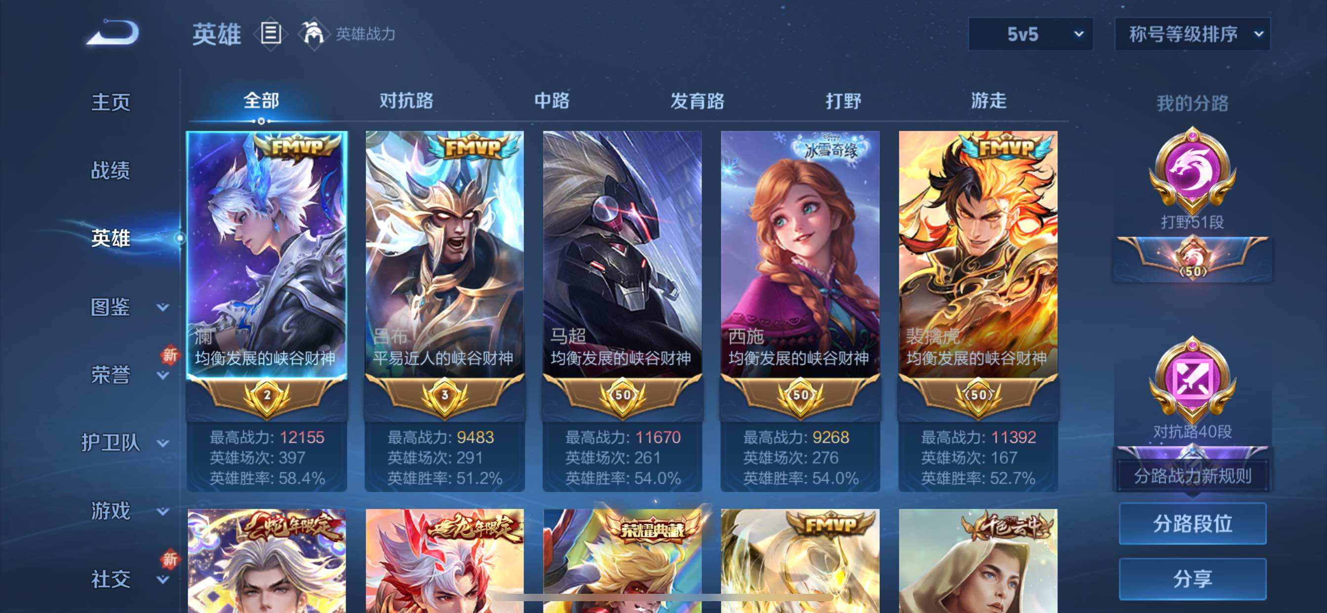 可换绑【V8精品号 打野51段 对抗路40段 澜金标1.21万 马超金标1.1