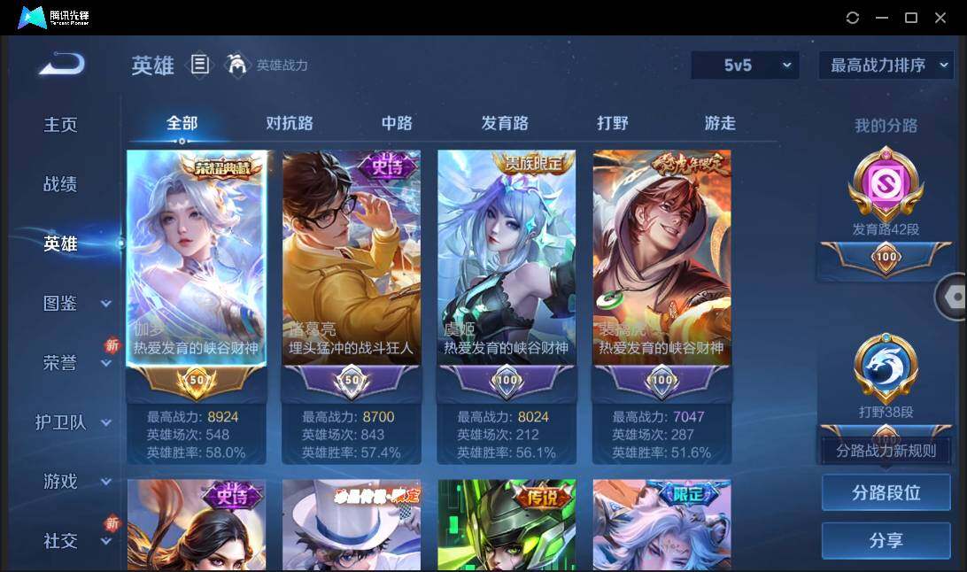 【W4577】满蛇年限定-发育路42段-安卓QQ-有二次-贵9-125英雄-4