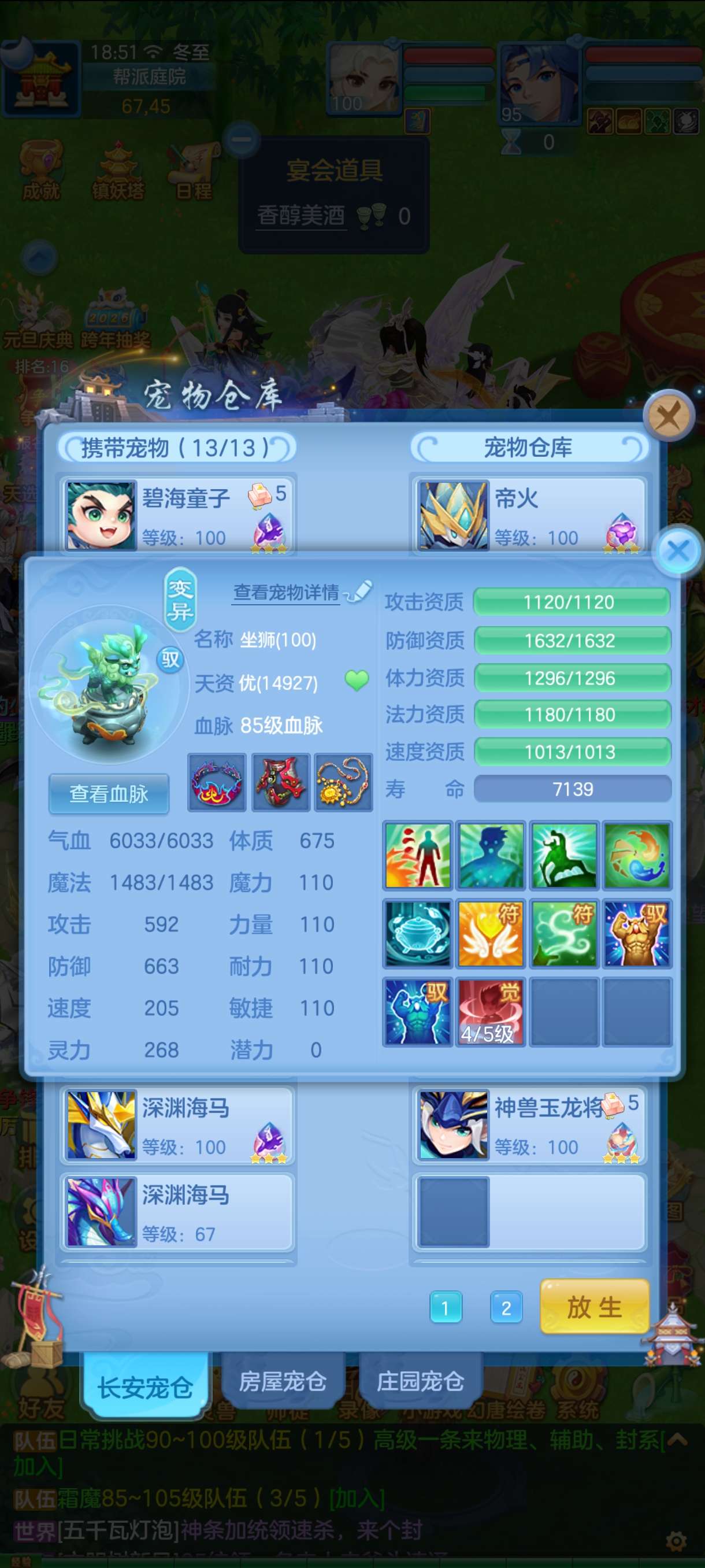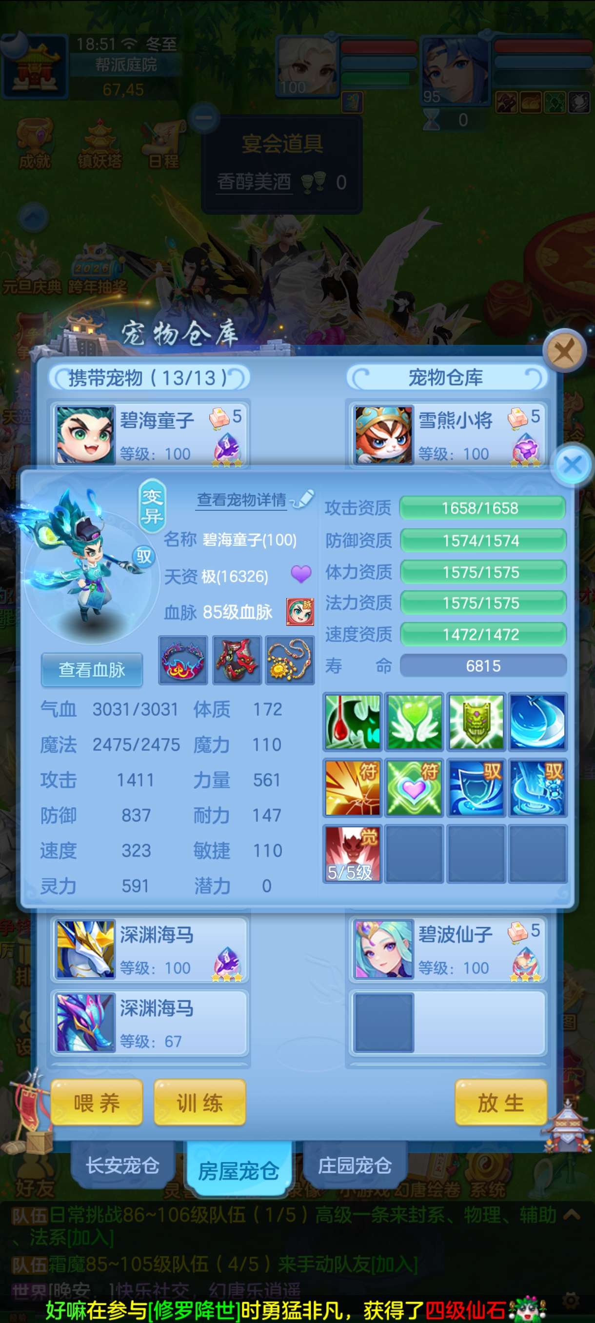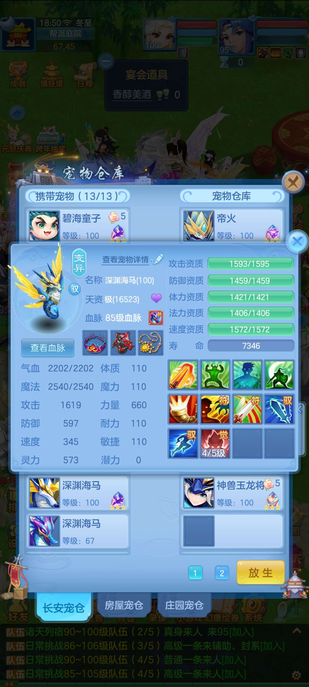 三神 8只6其中三只下 1.7以上评分 4只6龙虾皮肤 一直底火加皮肤 3只童子 加2童子皮肤 3只海马 加一个海马皮肤 加 海马天赋2个 浣熊皮肤 一直碧波5加皮肤 一直浣熊加皮肤