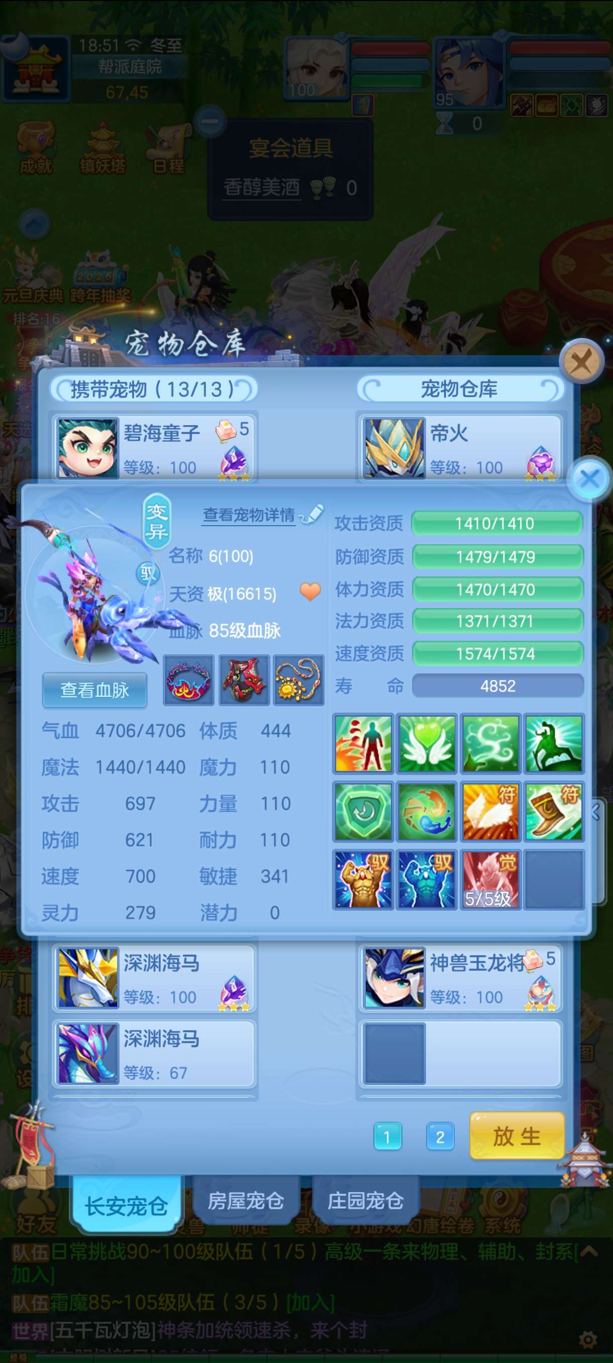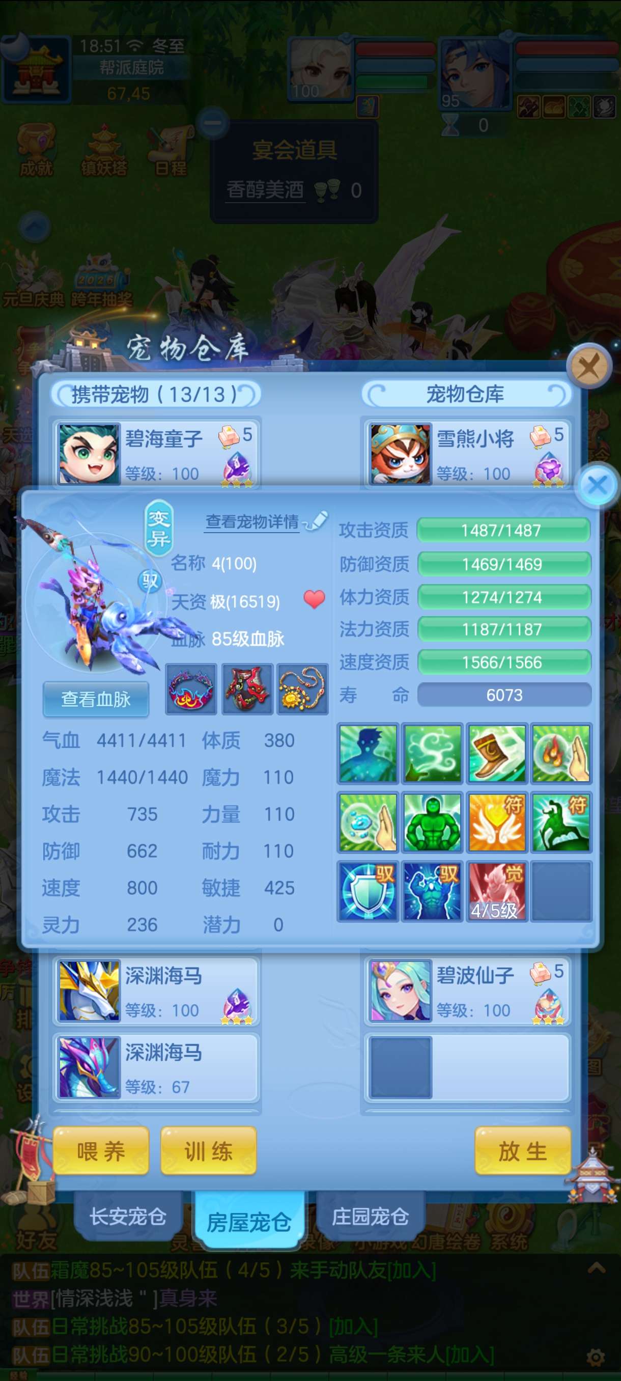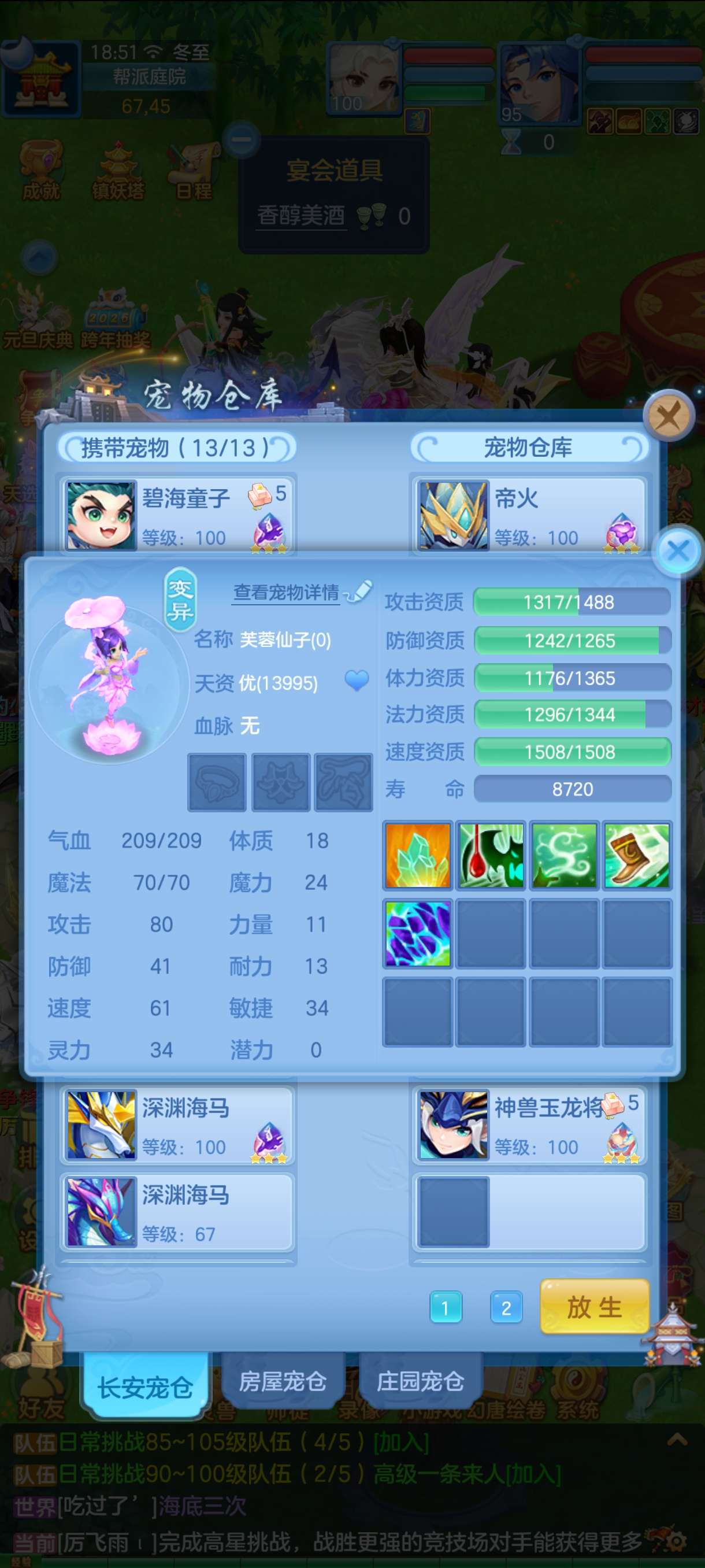 三神 8只6其中三只下 1.7以上评分 4只6龙虾皮肤 一直底火加皮肤 3只童子 加2童子皮肤 3只海马 加一个海马皮肤 加 海马天赋2个 浣熊皮肤 一直碧波5加皮肤 一直浣熊加皮肤