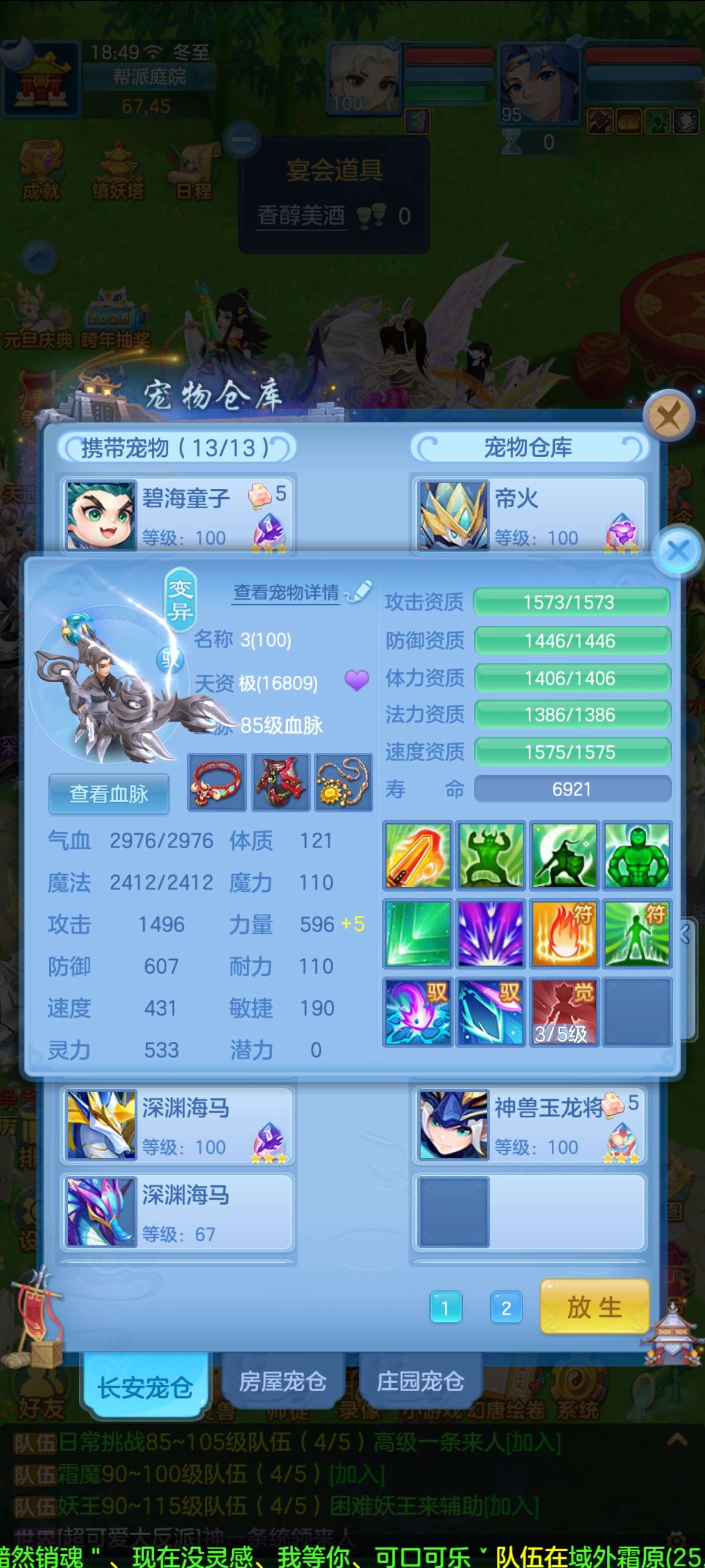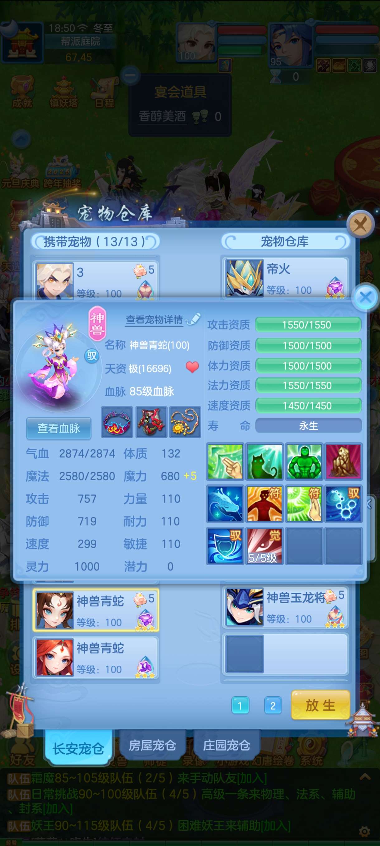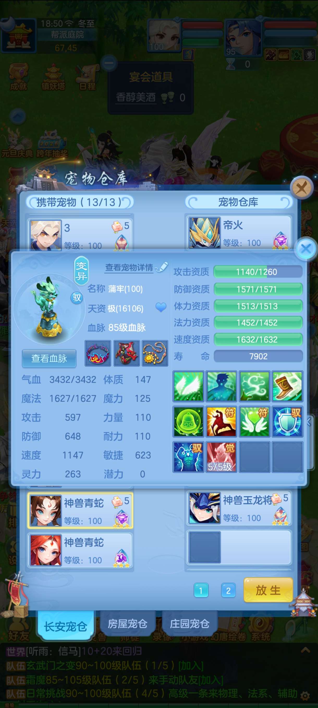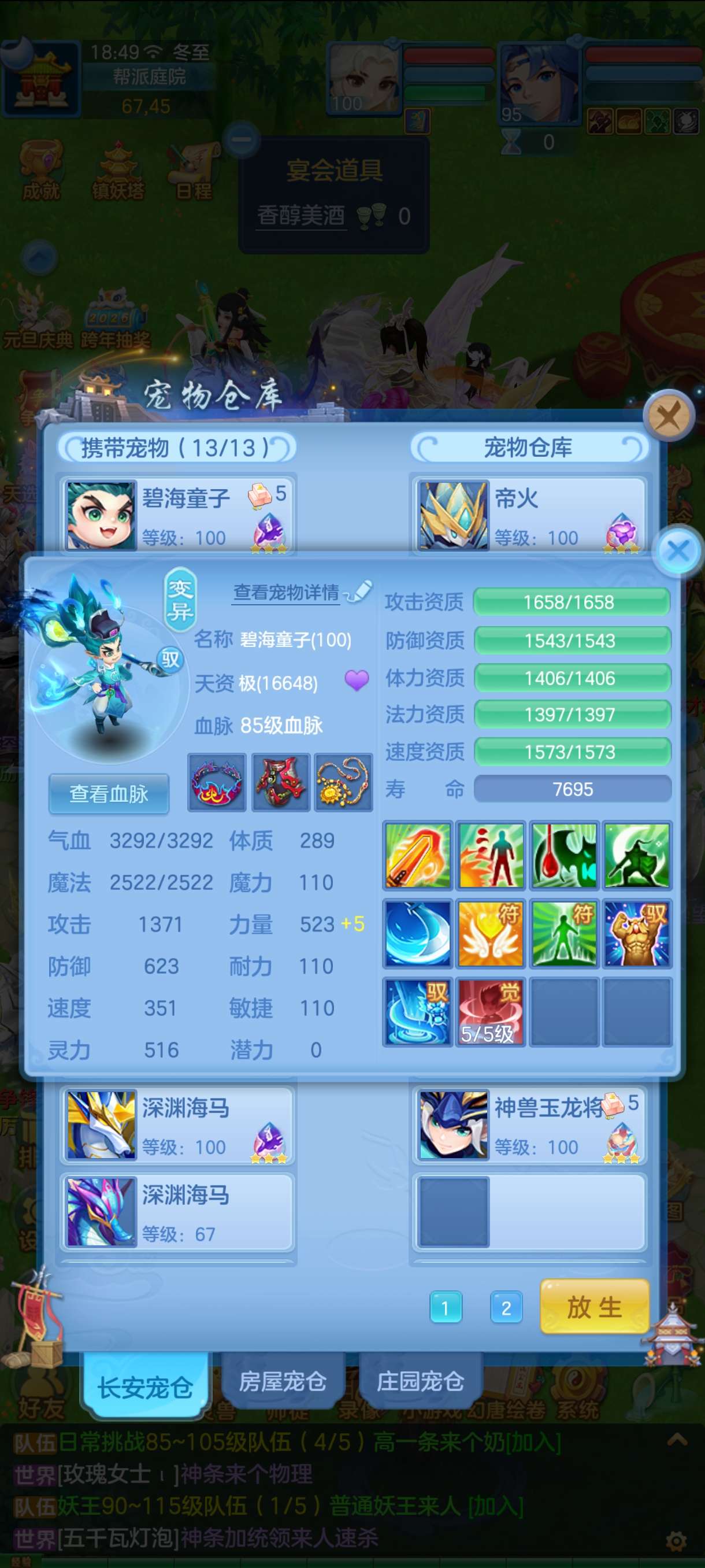 三神 都有内胆 2蛇一玉龙 全12段 3童子 有2个童子皮肤 8只6技能虾3只评分1.7W