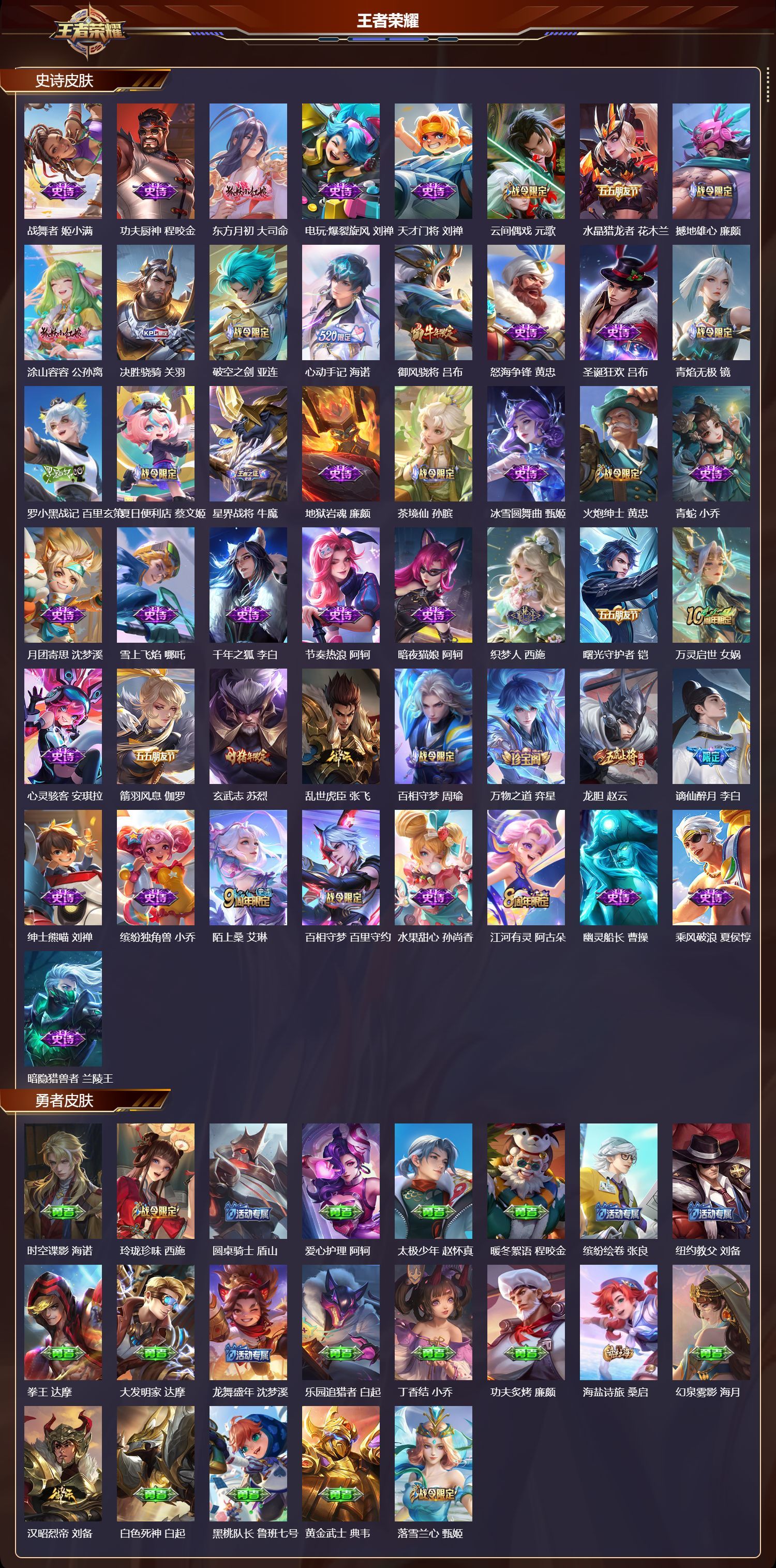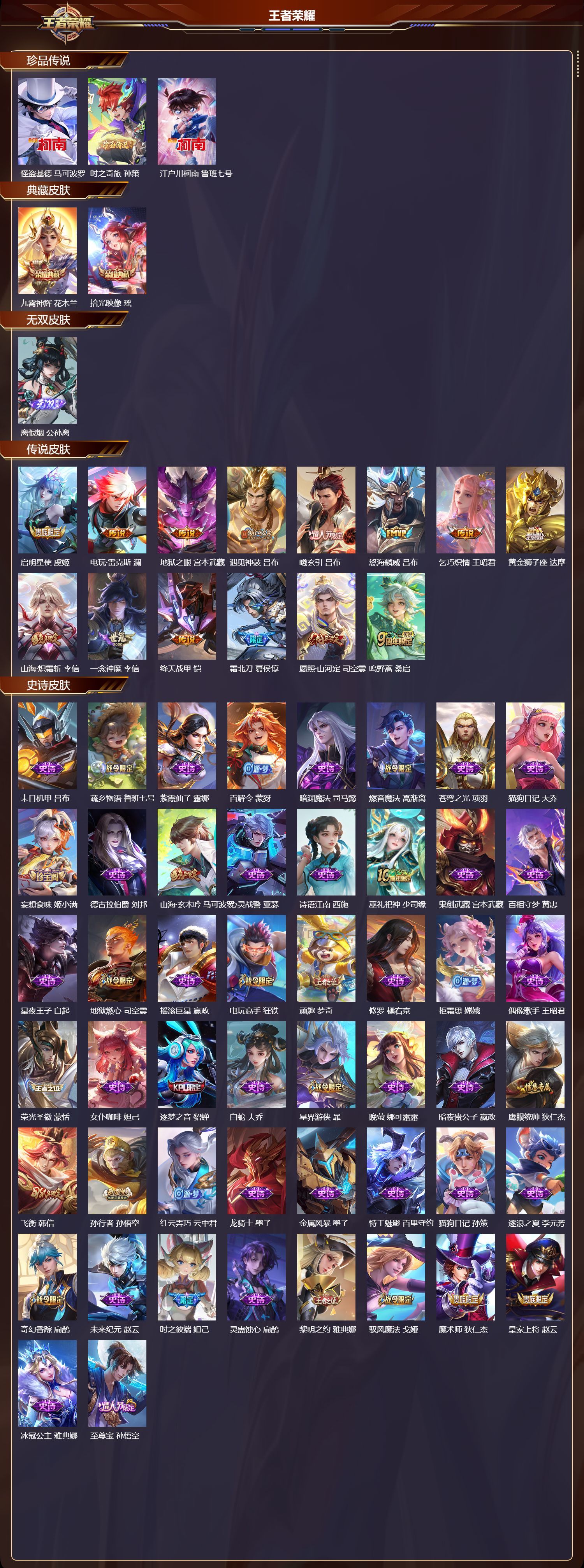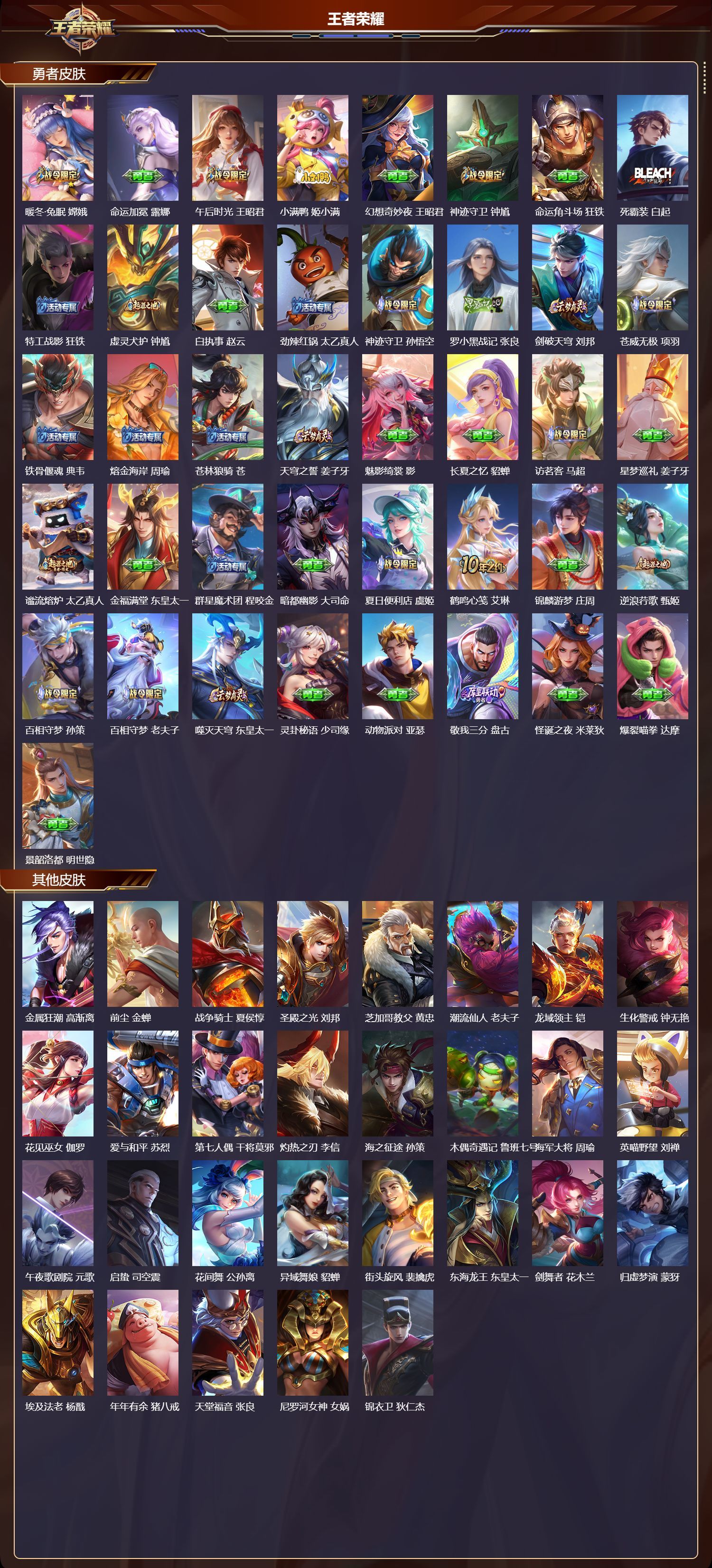 安卓QQ/至圣王者/296皮肤/127英雄/2典藏/0珍品无双/1无双/3珍品传说/14传说/99史