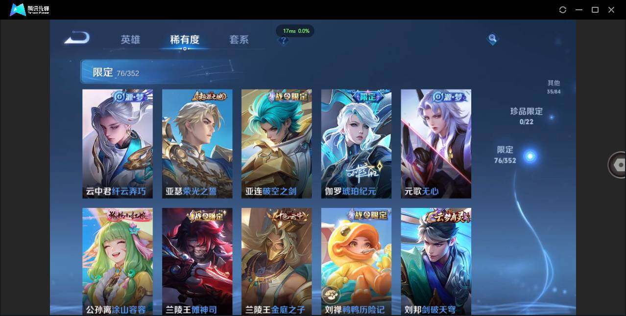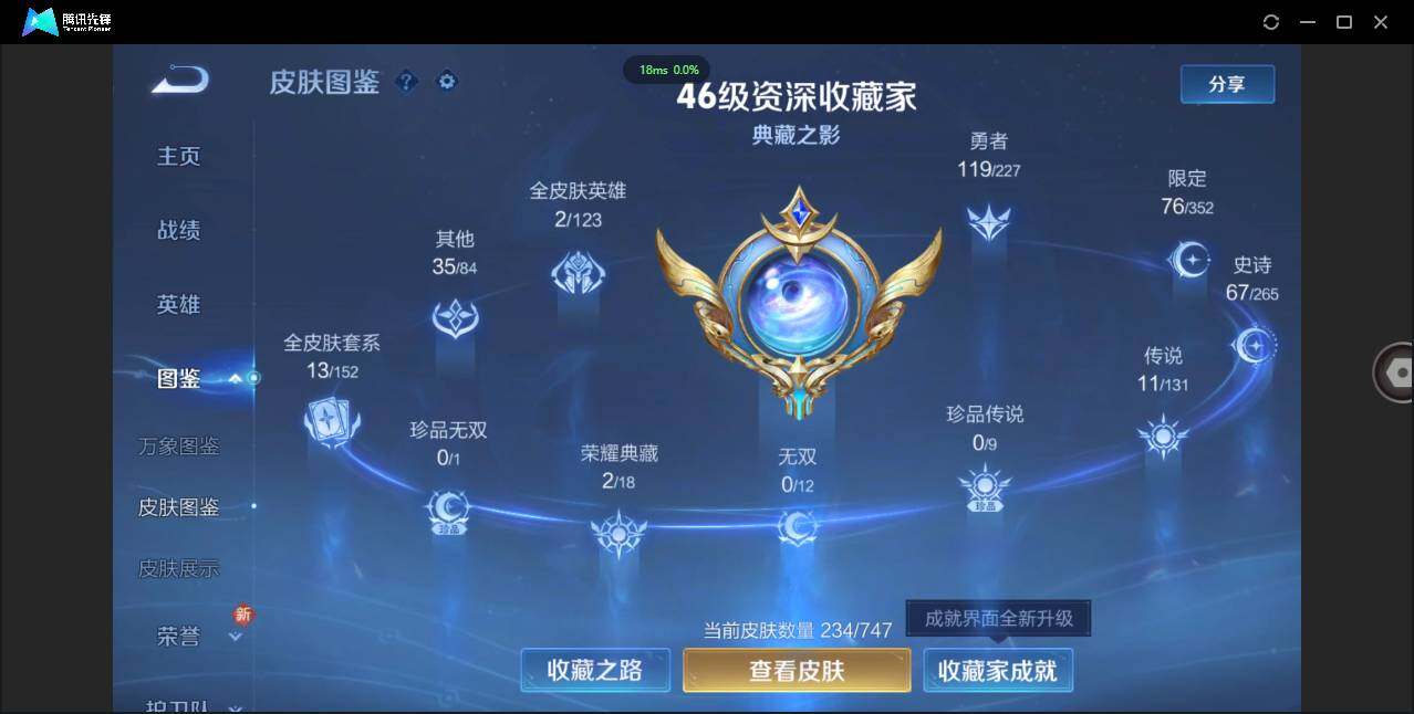 皮肤234 英雄126 至尊星耀 荣耀典藏2 传说11 其他皮肤86