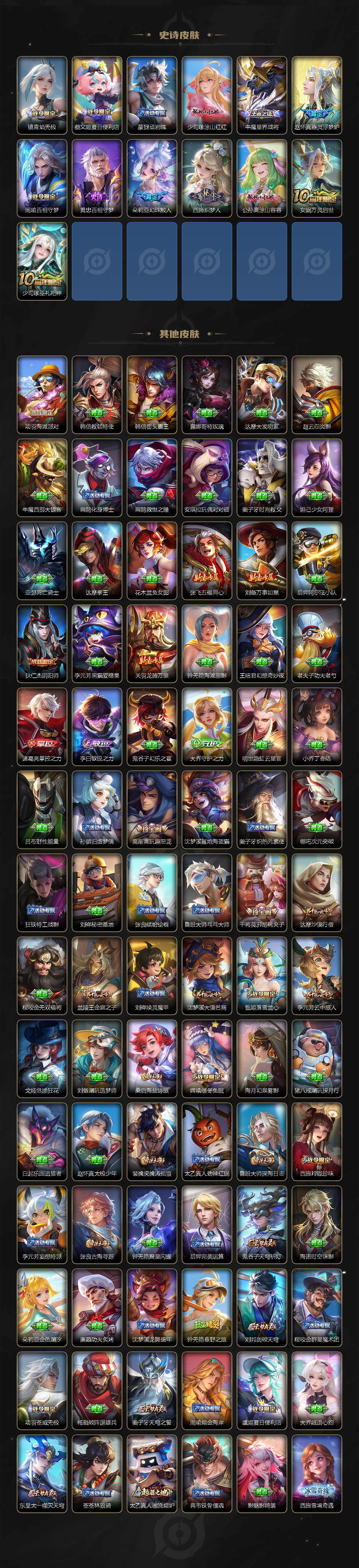 皮肤240 英雄127 至圣王者 荣耀典藏2 无双皮肤3 珍品传说4 传说21 其他皮肤91-