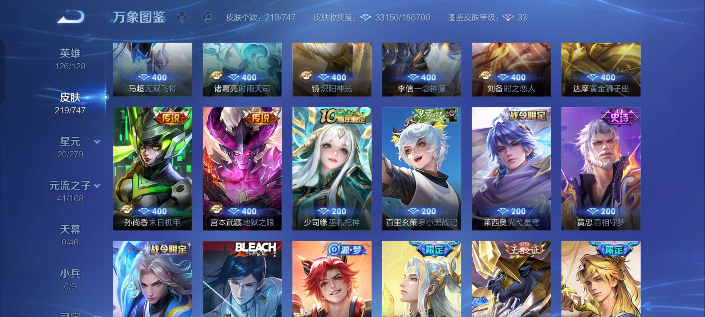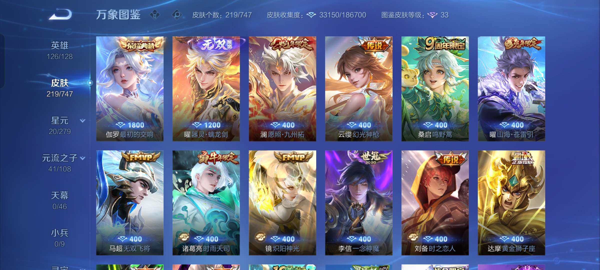 皮肤220 英雄128 荣耀王者 荣耀典藏1 无双皮肤1 传说12还带了一个600万战力的火影号