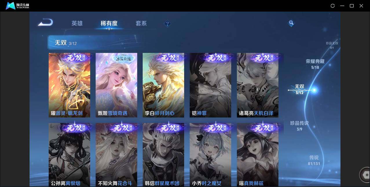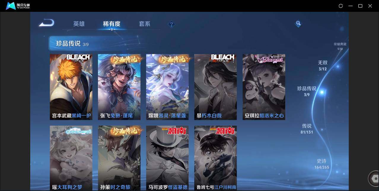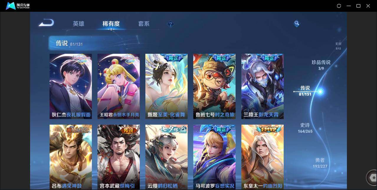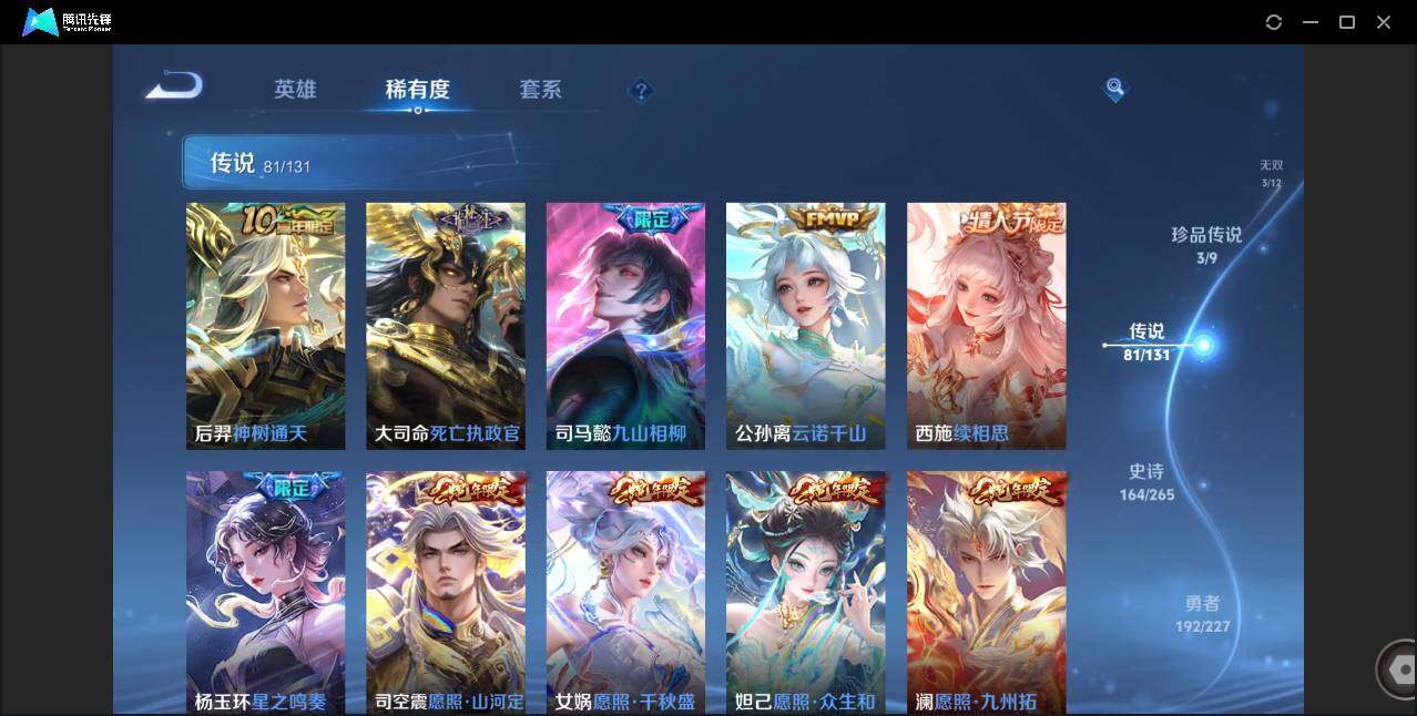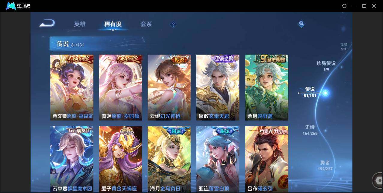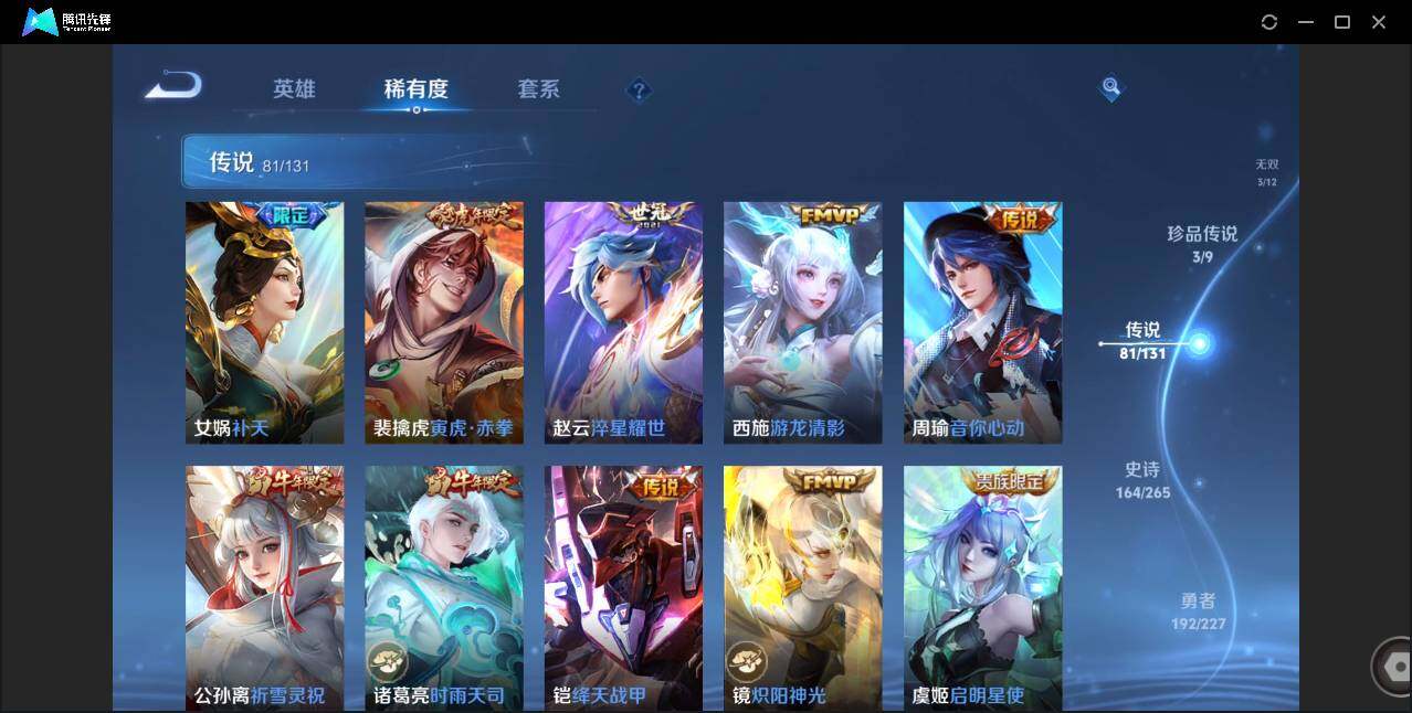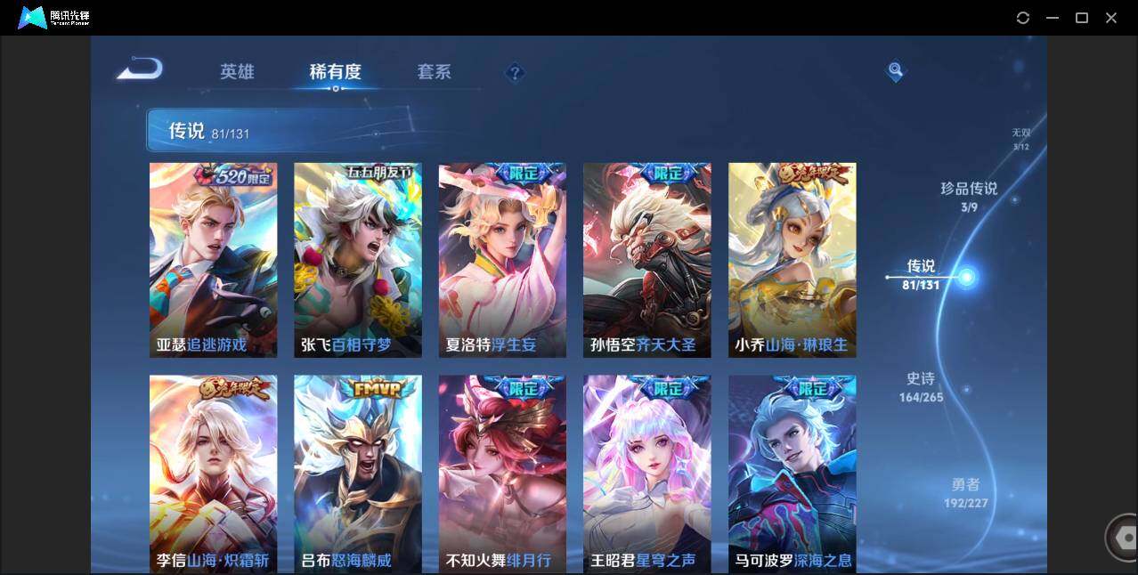 皮肤528 英雄128 荣耀王者 荣耀典藏6 无双皮肤3 珍品传说3 传说81 其他皮肤209-