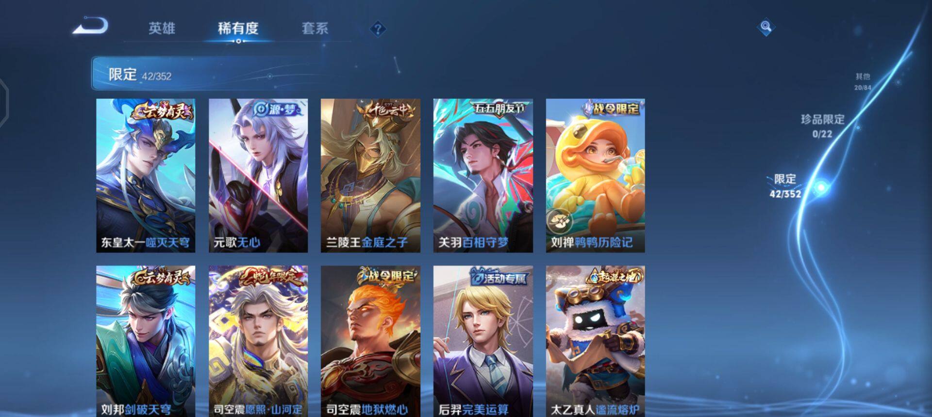 【限定皮肤】:姜子牙天穹之誓,狄仁杰阴阳师,赵云皇家上将,孙尚香蔷薇恋人,元歌