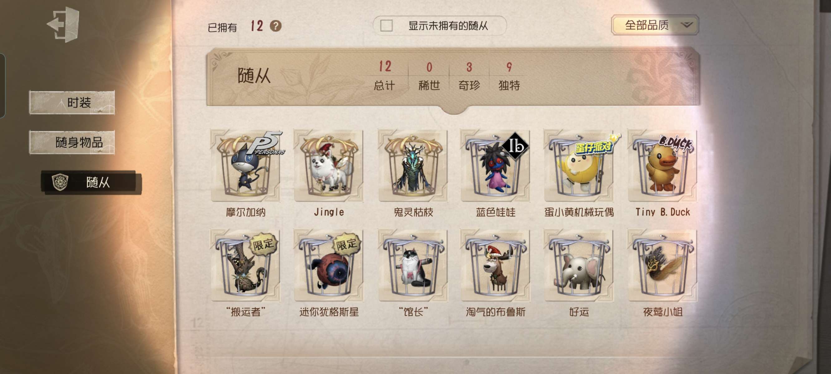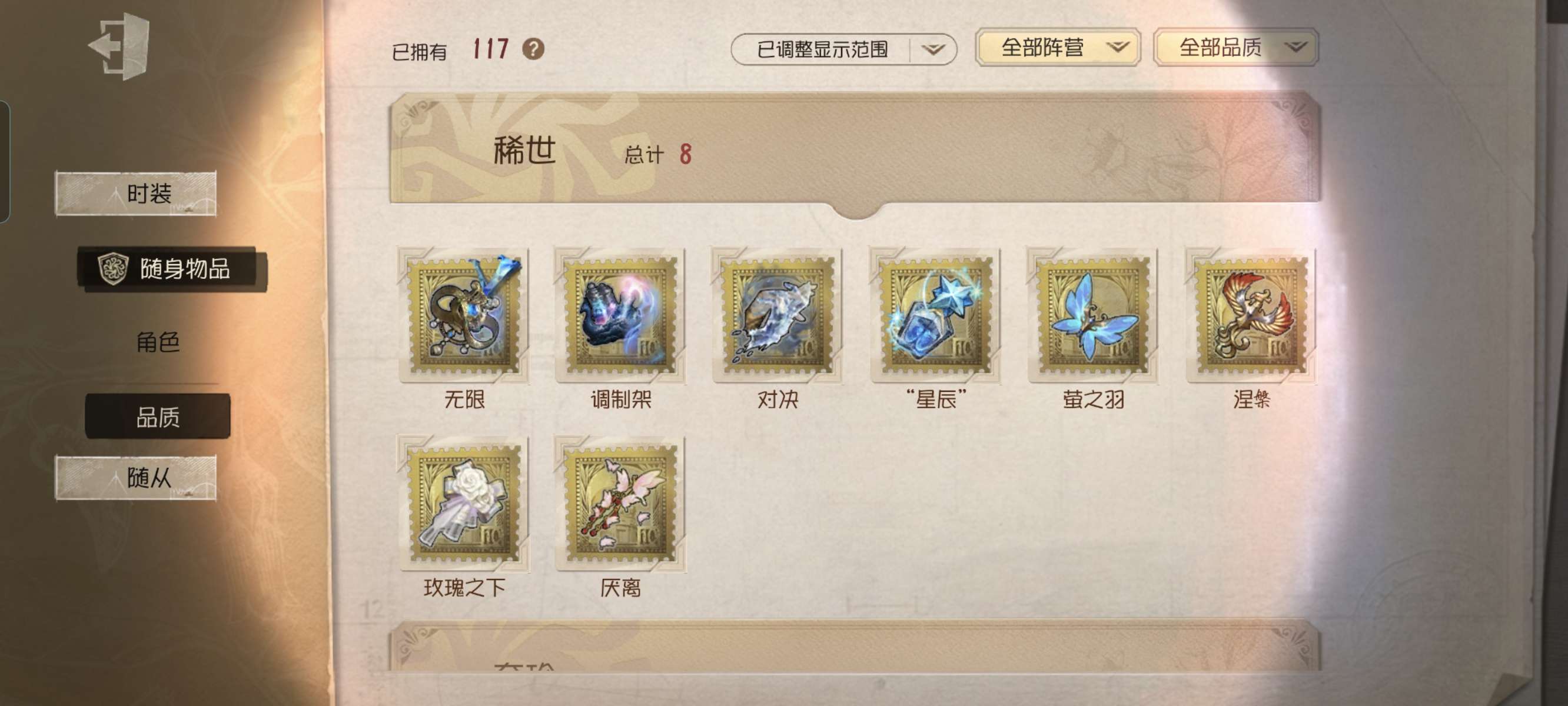 随身物品数量: